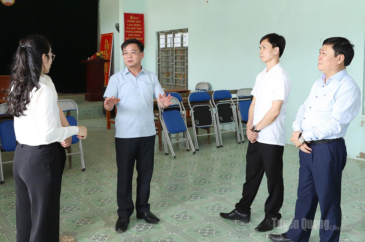 Chủ nhiệm Ủy ban Kiểm tra Tỉnh ủy Nguyễn Hưng Vượng kiểm tra tại khu vực bỏ phiếu thôn Đồng Tiến, xã Minh Quang.