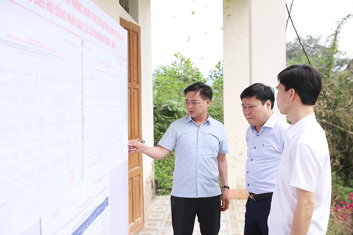 Chủ nhiệm Ủy ban Kiểm tra Tỉnh ủy Nguyễn Hưng Vượng kiểm tra tại khu vực bỏ phiếu thôn Phia Lài, xã Minh Quang.
