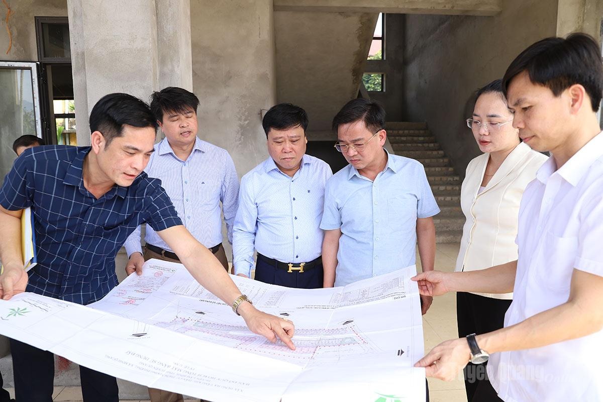 Chủ nhiệm Ủy ban Kiểm tra Tỉnh ủy Nguyễn Hưng Vượng kiểm tra tiến độ triển khai xây dựng công trình Nhà hiệu bộ và các công trình phụ trợ trường Mầm non xã Minh Quang.