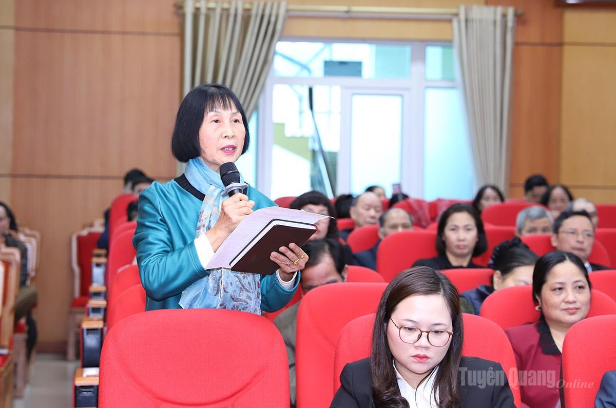 Cử tri Đặng Thị Như Nguyệt, tổ dân phố 5 nêu ý kiến tại buổi tiếp xúc.
