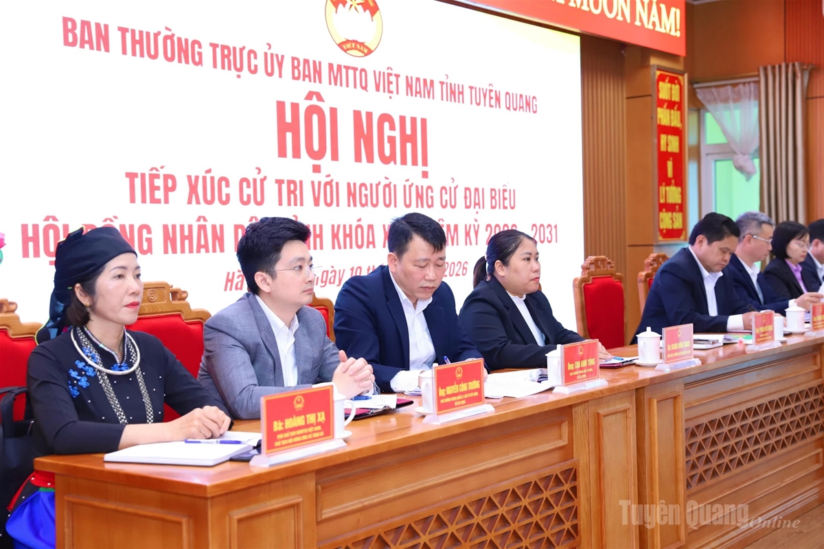 Các ứng cử viên tham gia buổi tiếp xúc cử tri gồm các ông, bà: Vàng Seo Cón, Ủy viên Ban Thường vụ Tỉnh ủy, Bí thư Đảng ủy, Chủ tịch HĐND phường Hà Giang 2; Phan Ngọc Thắng, Phó Chủ tịch UBND xã Thanh Thủy; Nguyễn Thanh Thủy, Phó Trưởng phòng Công tác Quốc hội, Văn phòng Đoàn ĐBQH và HĐND tỉnh; Nguyễn Công Trường, Phó Trưởng phòng Quản lý đầu tư xây dựng, Sở Xây dựng; Chu Anh Tùng, Phó Trưởng phòng Đầu tư công, Sở Tài chính; Hoàng Thị Xạ, Phó Chủ tịch Ủy ban MTTQ, Chủ tịch Hội Nông dân xã Tùng Bá; Giàng Hồng Trang, giáo viên trường Mầm non xã Phú Linh. Dự buổi tiếp xúc cử tri có lãnh đạo Ủy ban MTTQ tỉnh, Văn phòng UBND tỉnh, Đảng ủy, HĐND, UBND phường Hà Giang 1.
