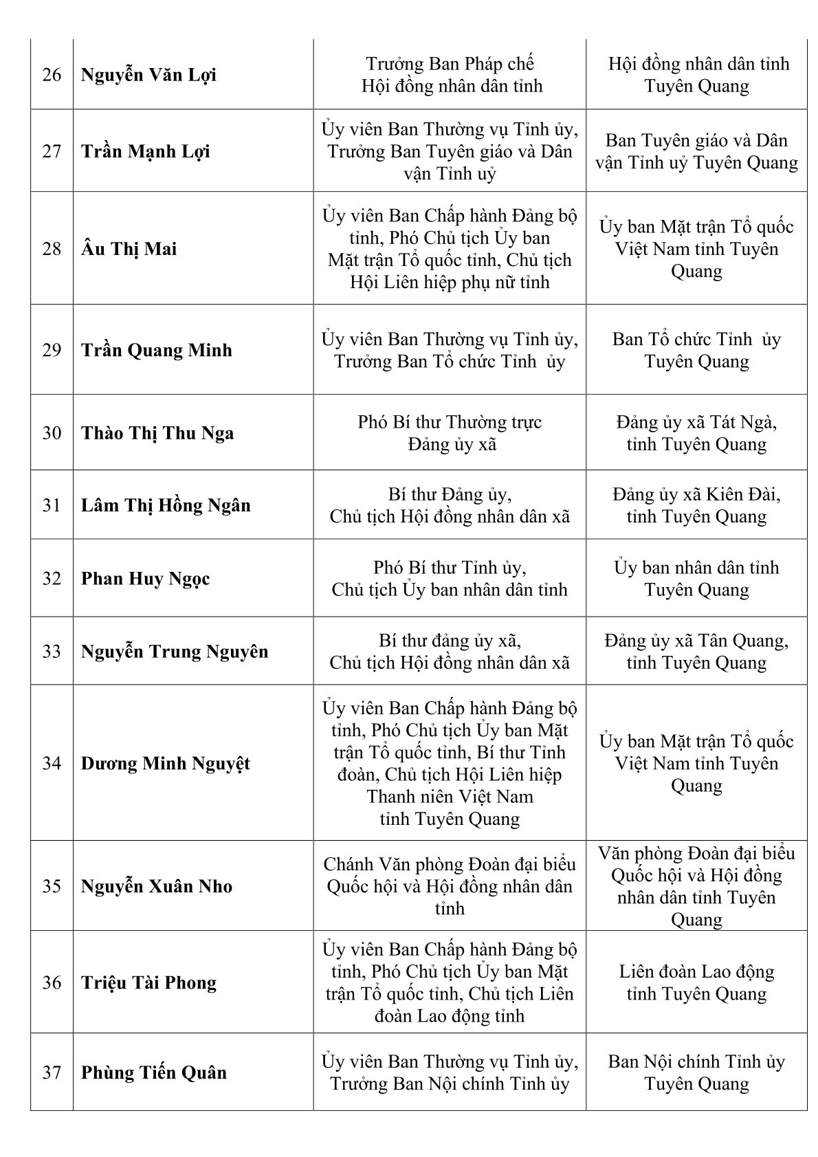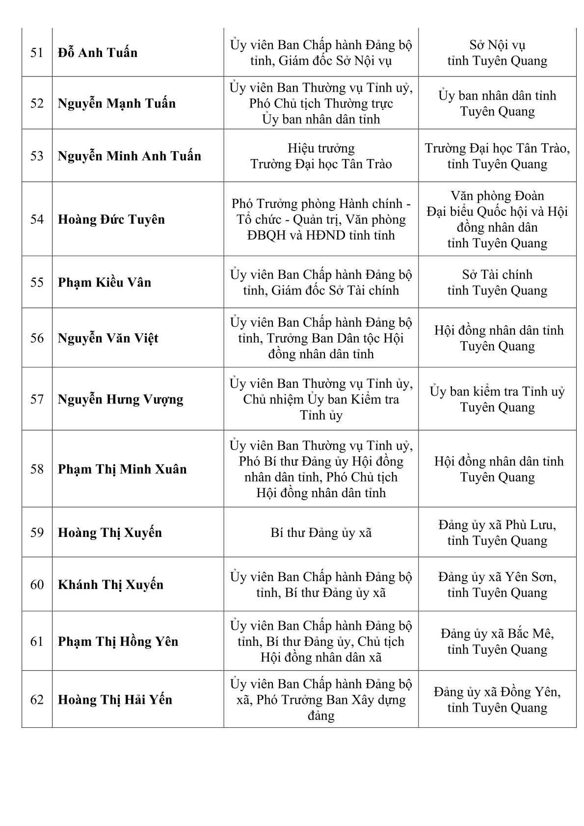 Ngày 18-3, Ủy ban Bầu cử tỉnh Tuyên Quang đã chính thức ban hành Nghị quyết số 81/NQ-UBBC về việc công bố kết quả bầu cử và danh sách 62 người trúng cử đại biểu Hội đồng nhân dân tỉnh khóa XX, nhiệm kỳ 2026-2031.