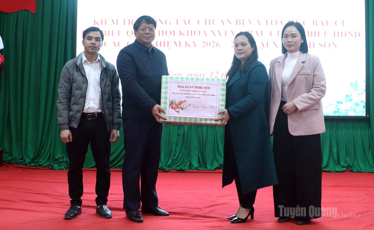 Kết luận tại buổi làm việc, Phó Chủ tịch Thường trực Uỷ ban MTTQ tỉnh Hà Trung Kiên đánh giá cao công tác chuẩn bị bầu cử của hai xã. Đồng chí đề nghị, hai xã tăng cường công tác tuyên truyền về công tác bầu cử một cách đa dạng; chủ động đảm bảo an ninh trật tự trong dịp trước, trong, sau Tết Nguyên đán và thời điểm diễn ra bầu cử; phân công rõ người, rõ việc đảm bảo công tác bầu cử đúng quy định; rà soát lại danh sách ứng cử đảm bảo chặt chẽ, chính xác; khắc phục mọi khó khó khăn, đảm bảo cơ sở vật chất thuận lợi nhất cho công tác bầu cử; chăm lo Tết cho hộ nghèo, gia đình chính sách, người có công, đảm bảo người người, nhà nhà đều đón Tết Nguyên đán Bính Ngọ 2026 đầm ấm, hạnh phúc.