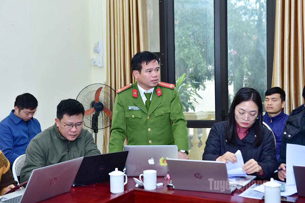 Lãnh đạo Công an xã Hùng An báo cáo thực hiện các nhiệm vụ chuẩn bị cho công tác bầu cử đại biểu Quốc hội khóa XVI và đại biểu HĐND các cấp nhiệm kỳ 2026 - 2031.