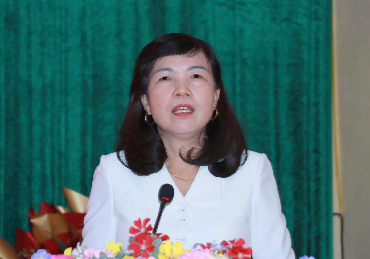 Đồng chí Phạm Thị Minh Xuân, Uỷ viên Ban Thường vụ Tỉnh uỷ, Phó Chủ tịch HĐND tỉnh trình bày chương trình hành động tại buổi tiếp xúc cử tri.