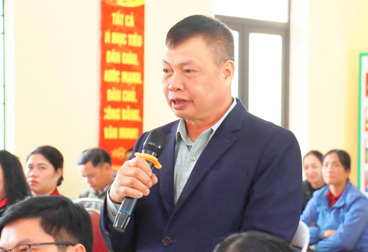 Cử tri xã Tiên Yên phát biểu ý kiến tại hội nghị.