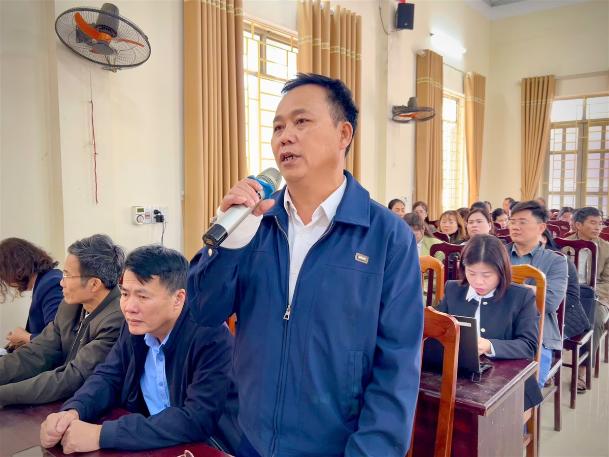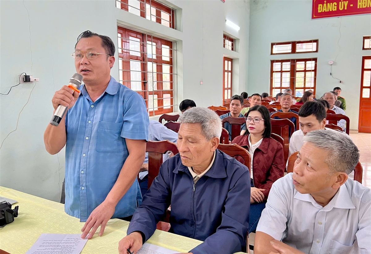 Cử tri xã Trung Sơn phát biểu ý kiến tại hội nghị.