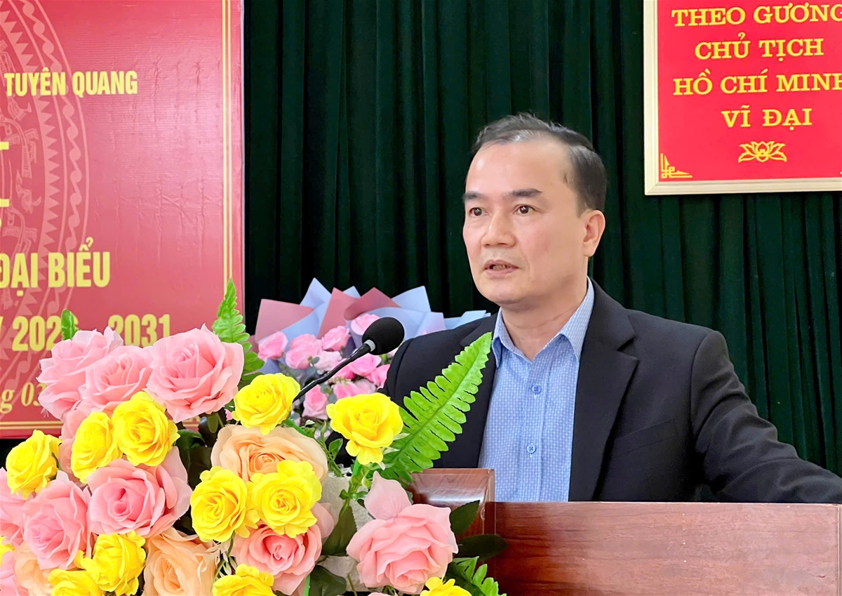 Ứng cử viên Nguyễn Minh Anh Tuấn, Hiệu trưởng Trường Đại học Tân Trào ttrình bày chương trình hành động cá nhân.