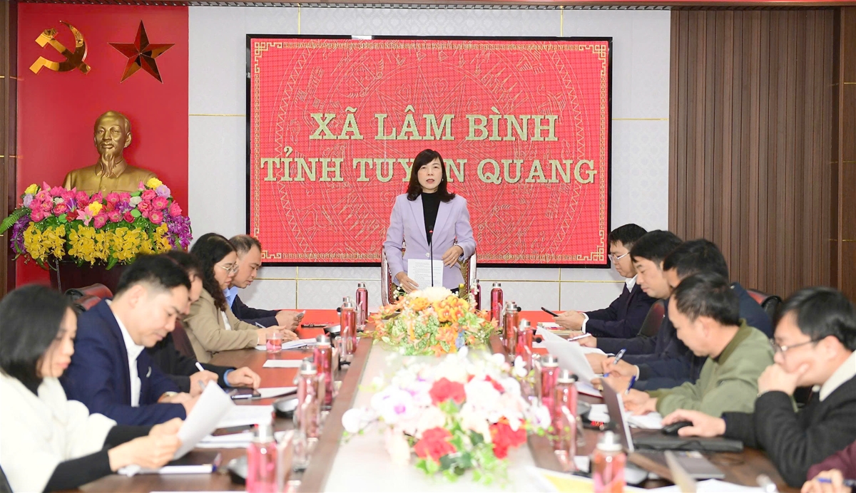 Đồng chí Phạm Thị Minh Xuân, Ủy viên Ban Thường vụ Tỉnh ủy, Phó Chủ tịch HĐND tỉnh phát biểu kết luận buổi kiểm tra tại xã Lâm Bình.