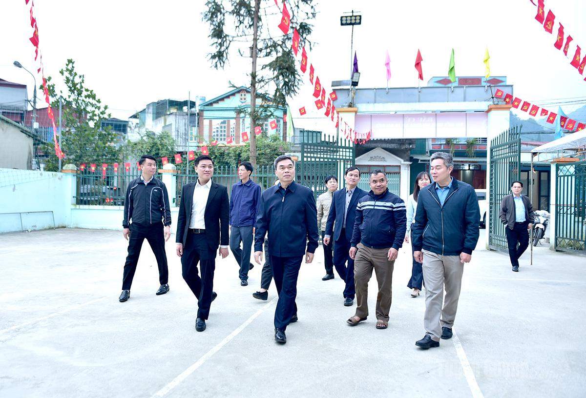 Đồng chí Ma Thế Hồng, Phó Bí thư Tỉnh ủy, Chủ tịch Ủy ban MTTQ Việt Nam tỉnh cùng đoàn công tác đi kiểm tra công tác chuẩn bị bầu cử ở khu vực bỏ phiếu tại thôn Tam Sơn 1.