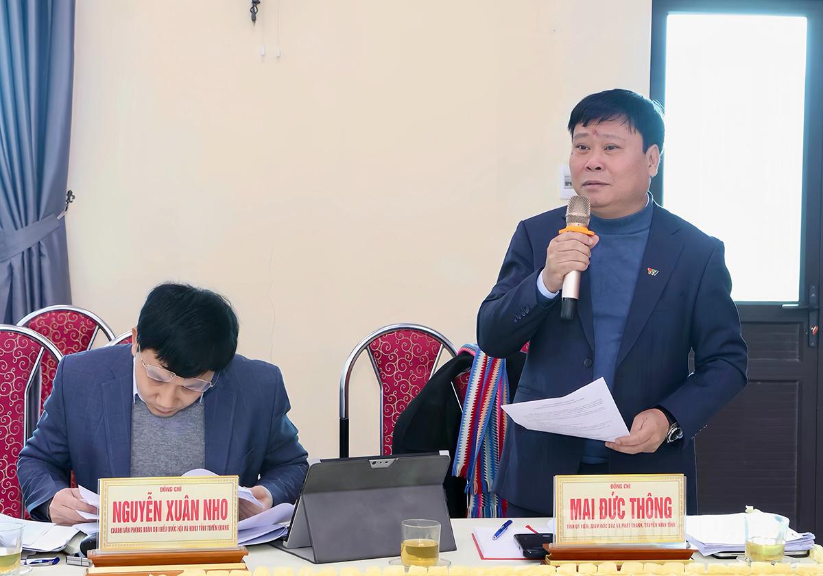 Đồng chí Mai Đức Thông, Ủy viên BCH Đảng bộ tỉnh, Giám đốc Báo và phát thanh, truyền hình Tuyên Quang, Chủ tịch Hội Nhà báo tỉnh, thành viên Đoàn kiểm tra phát biểu ý kiến.