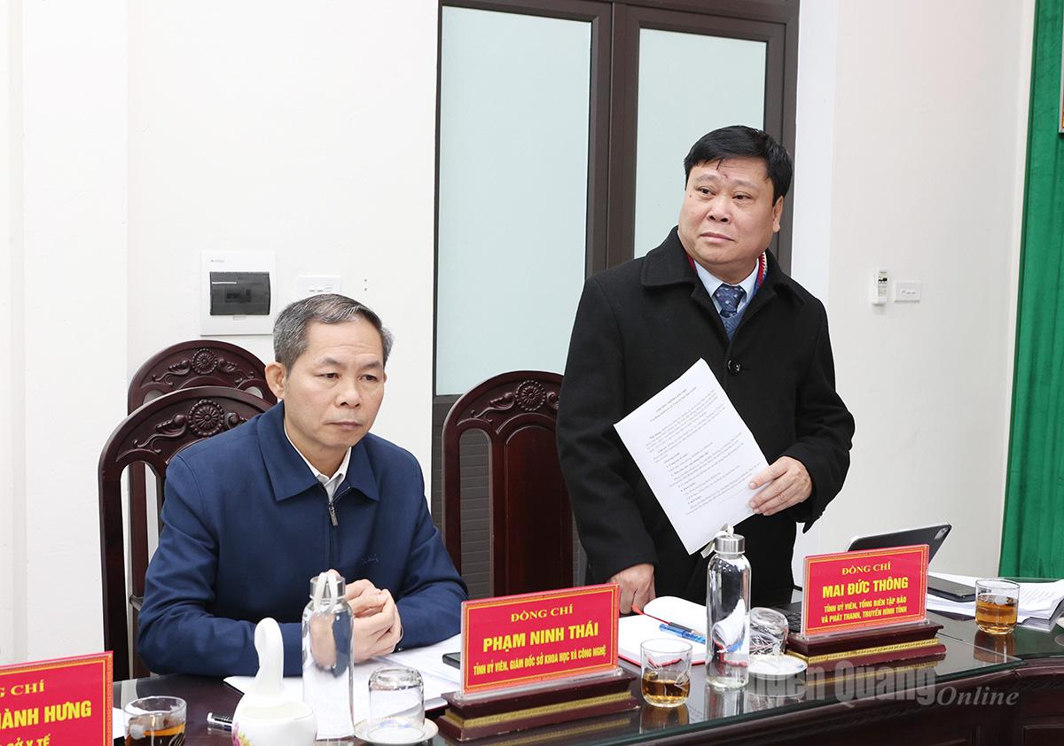 Đồng chí Mai Đức Thông, Ủy viên BCH Đảng bộ tỉnh, Giám đốc Báo và phát thanh, truyền hình Tuyên Quang, Chủ tịch Hội Nhà báo tỉnh, thành viên Đoàn kiểm tra số 2 phát biểu ý kiến.