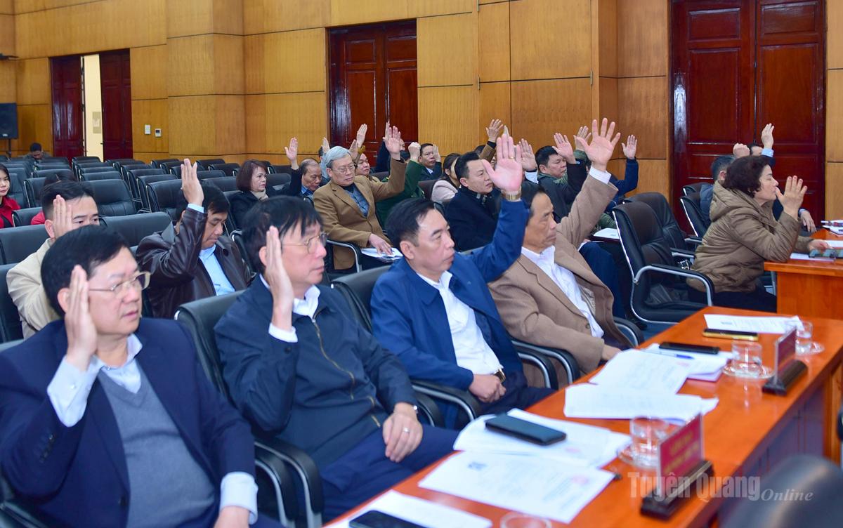 Các đại biểu biểu quyết thông qua danh sách 101 người đủ tiêu chuẩn ứng cử đại biểu HĐND tỉnh khóa XX, nhiệm kỳ 2026 - 2031.