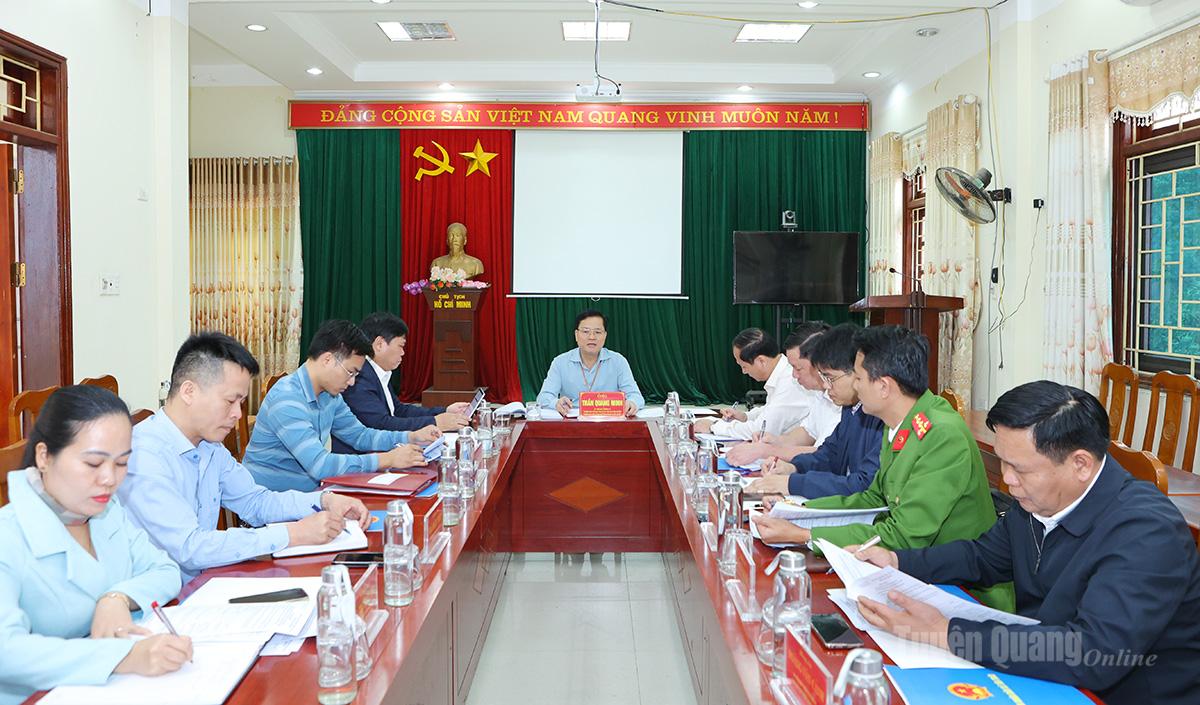 Đồng chí Trần Quang Minh, Ủy viên Ban Thường vụ Tỉnh ủy, Trưởng ban Tổ chức Tỉnh ủy, Ủy viên Ban Chỉ đạo Bầu cử tỉnh, Trưởng ban Bầu cử đại biểu HĐND tỉnh đơn vị số 1 chủ trì buổi làm việc với xã Tân Trào.