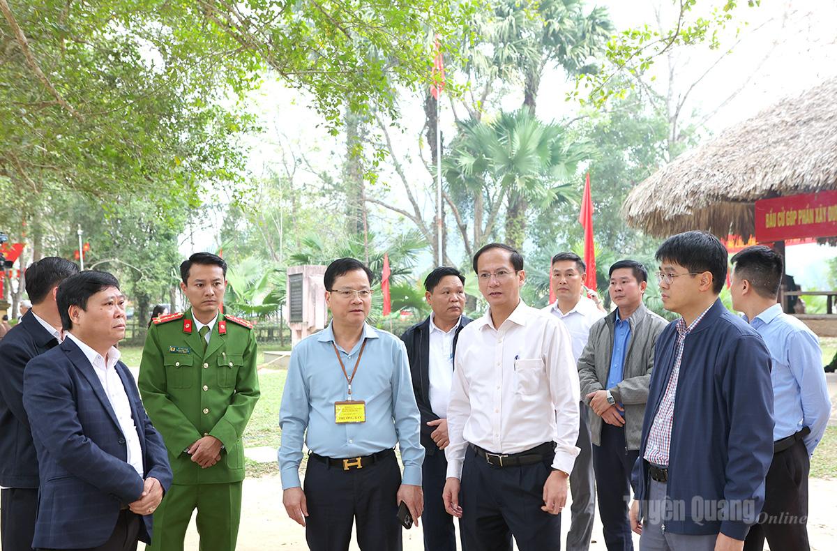 Đoàn kiểm tra công tác chuẩn bị và tổ chức bầu cử tại khu vực bỏ phiếu số 1, xã Tân Trào.