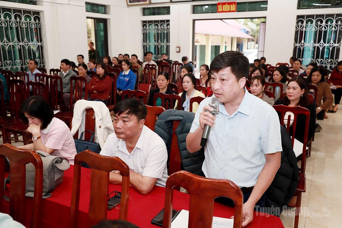 Cử tri xã Kiên Đài nêu ý kiến tại buổi tiếp xúc.
