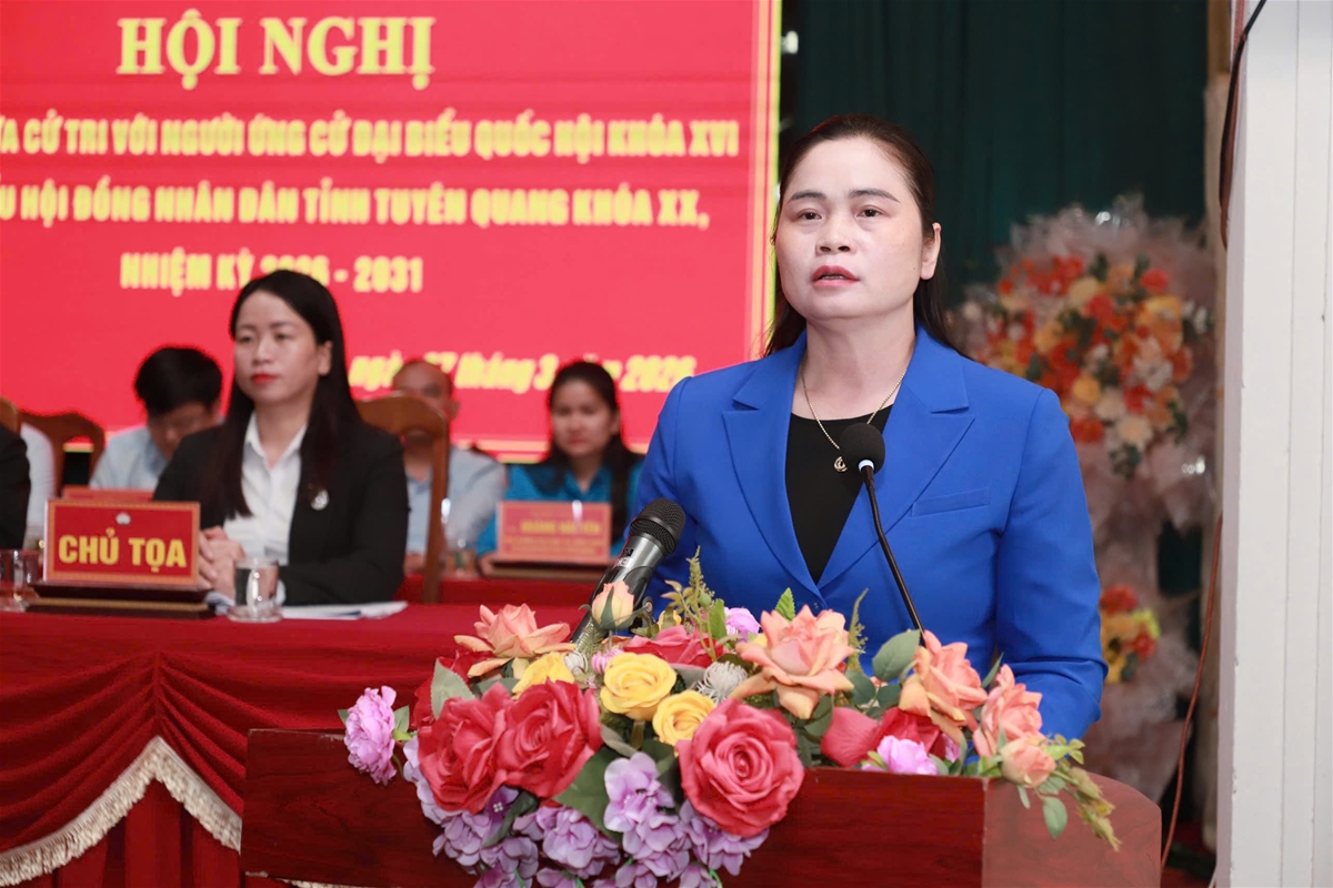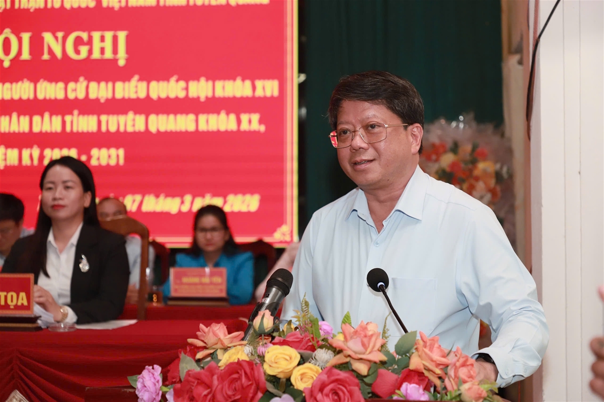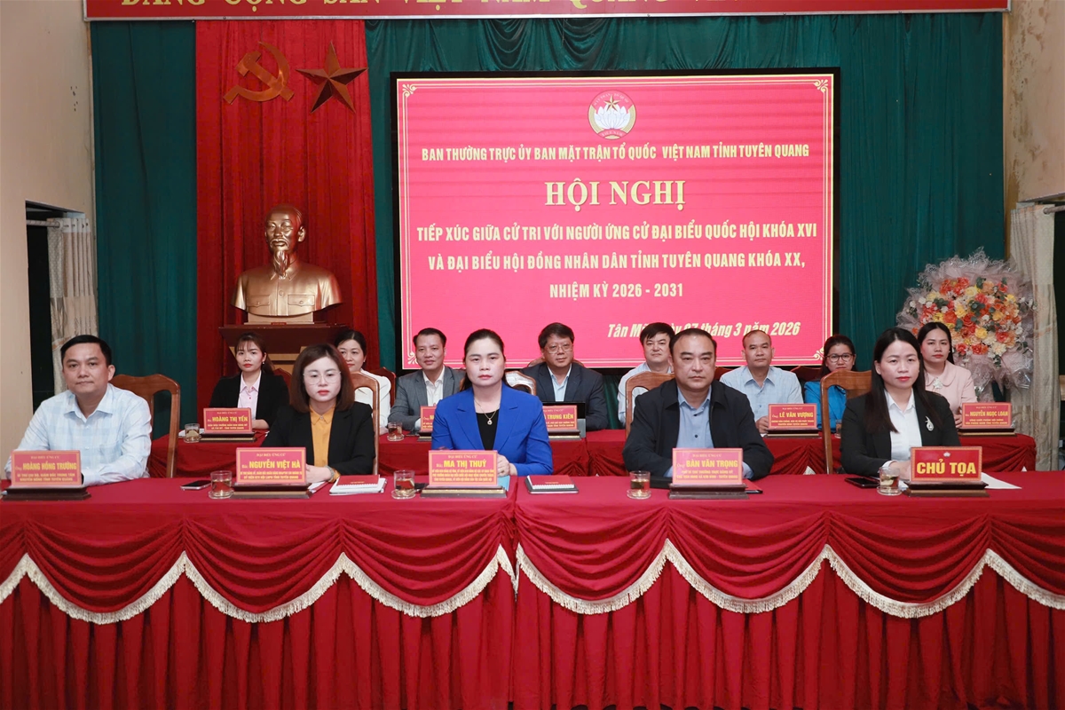 Đại diện Ủy ban MTTQ Việt Nam tỉnh đã lần lượt giới thiệu tóm tắt tiểu sử, quá trình công tác của các ứng cử viên của Đơn vị bầu cử đại biểu Quốc hội số 02, tỉnh Tuyên Quang gồm các ứng cử viên: Ma Thị Thúy, Ủy viên Ban Chấp hành Đảng bộ tỉnh, Phó Trưởng đoàn đại biểu Quốc hội hoạt động chuyên trách khóa XV tỉnh; Nguyễn Việt Hà, Giám đốc Ngân hàng Nông nghiệp và Phát triển nông thôn Việt Nam - Chi nhánh Tuyên Quang, đại biểu Quốc hội khóa XV tỉnh; Hoàng Hồng Trường, Giám đốc Trung tâm Khuyến nông tỉnh Tuyên Quang và Bàn Văn Trọng, Phó Bí thư Thường trực Đảng ủy, Chủ tịch Hội đồng nhân dân xã Kim Bình.