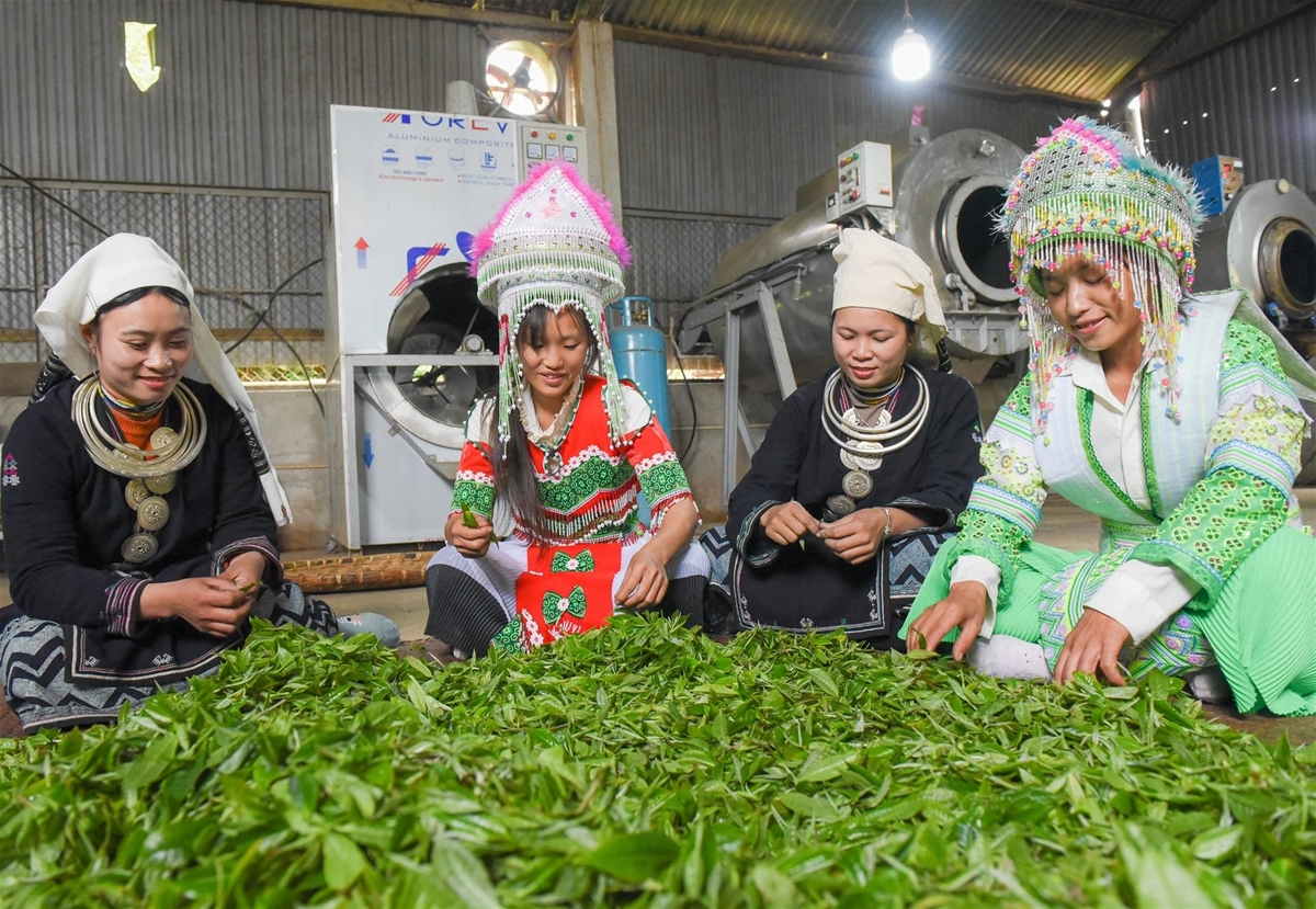 Người dân làm sản phẩm OCOP từ chè theo hỗ trợ tại Nghị quyết số 03/2021/NQ-HĐND ngày 16/7/2021 của HĐND tỉnh về chính sách hỗ trợ phát triển sản xuất nông, lâm nghiệp, thủy sản hàng hóa; sản phẩm OCOP và xây dựng nông thôn mới trên địa bàn tỉnh giai đoạn 2021-2025. Ảnh Đức Thắng.