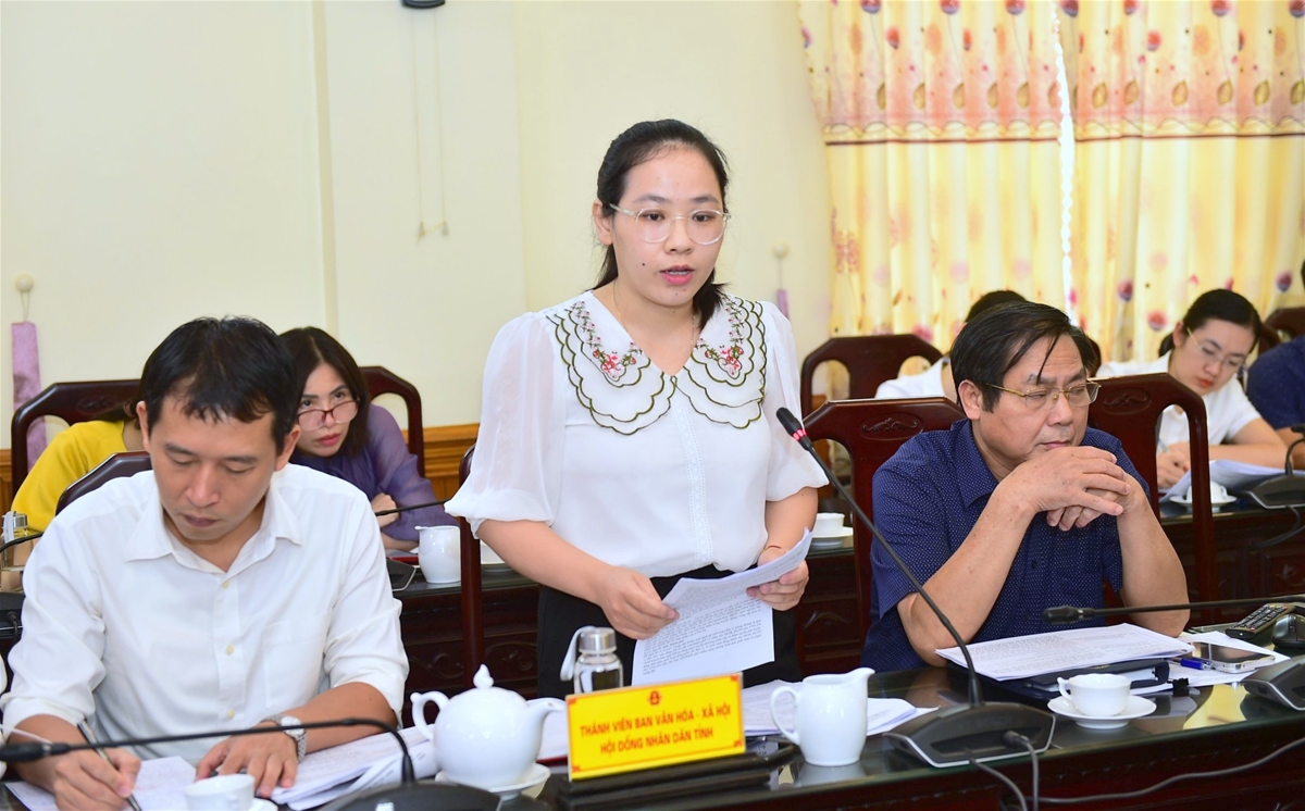 Thành viên Ban Văn hóa - Xã hội HĐND tỉnh nêu nội dung chất vấn về công tác chăm sóc, giáo dục và bảo vệ trẻ em trên địa bàn tỉnh tại phiên họp thứ 34 của Thường trực HĐND tỉnh.