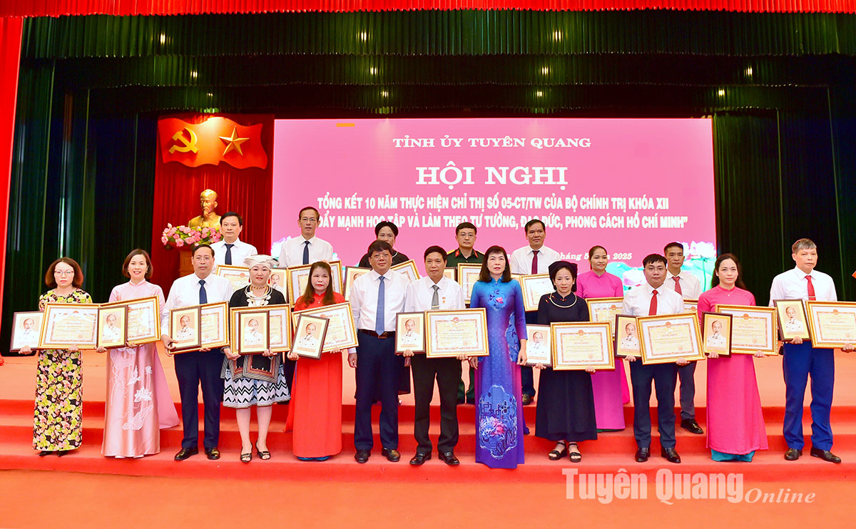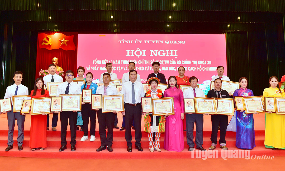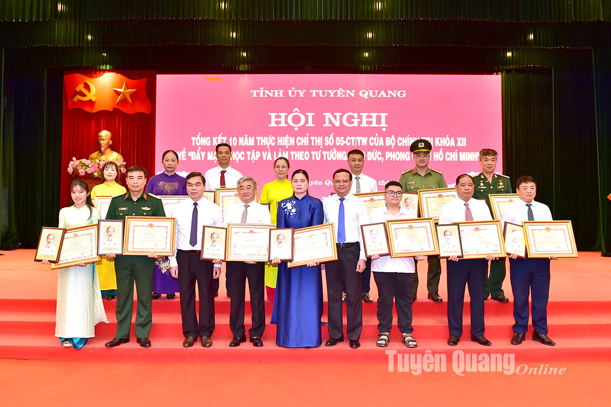 Tại Hội nghị, Ban Thường vụ Tỉnh ủy đã trao quà cho 5 tập thể, cá nhân được đề nghị Chính phủ và Ban Tuyên giáo và Dân vận Trung ương khen thưởng; trao Bằng khen của Chủ tịch UBND tỉnh cho 82 tập thể, cá nhân tiêu biểu trong học tập và làm theo tư tưởng, đạo đức, phong cách Hồ Chí Minh giai đoạn 2016-2025.