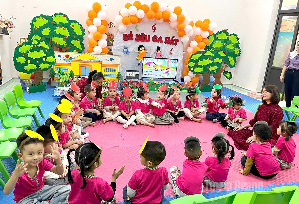 Một giờ học của cô và cháu Trường mầm non Tân Trào, phường Minh Xuân.