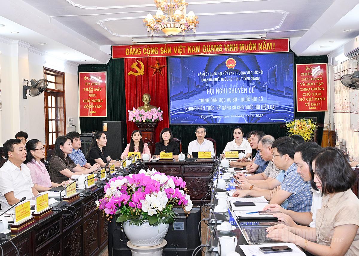 Tại hội nghị, các đại biểu đã được nghe báo cáo về công tác tổ chức thực hiện kế hoạch số 39 về thực hiện phong trào Bình dân học vụ số - Quốc hội số và chủ trương của Đảng ủy Quốc hội về việc xây dựng nền tảng kiến thức và kỹ năng số cho một Quốc hội hiện đại, học tập suốt đời.