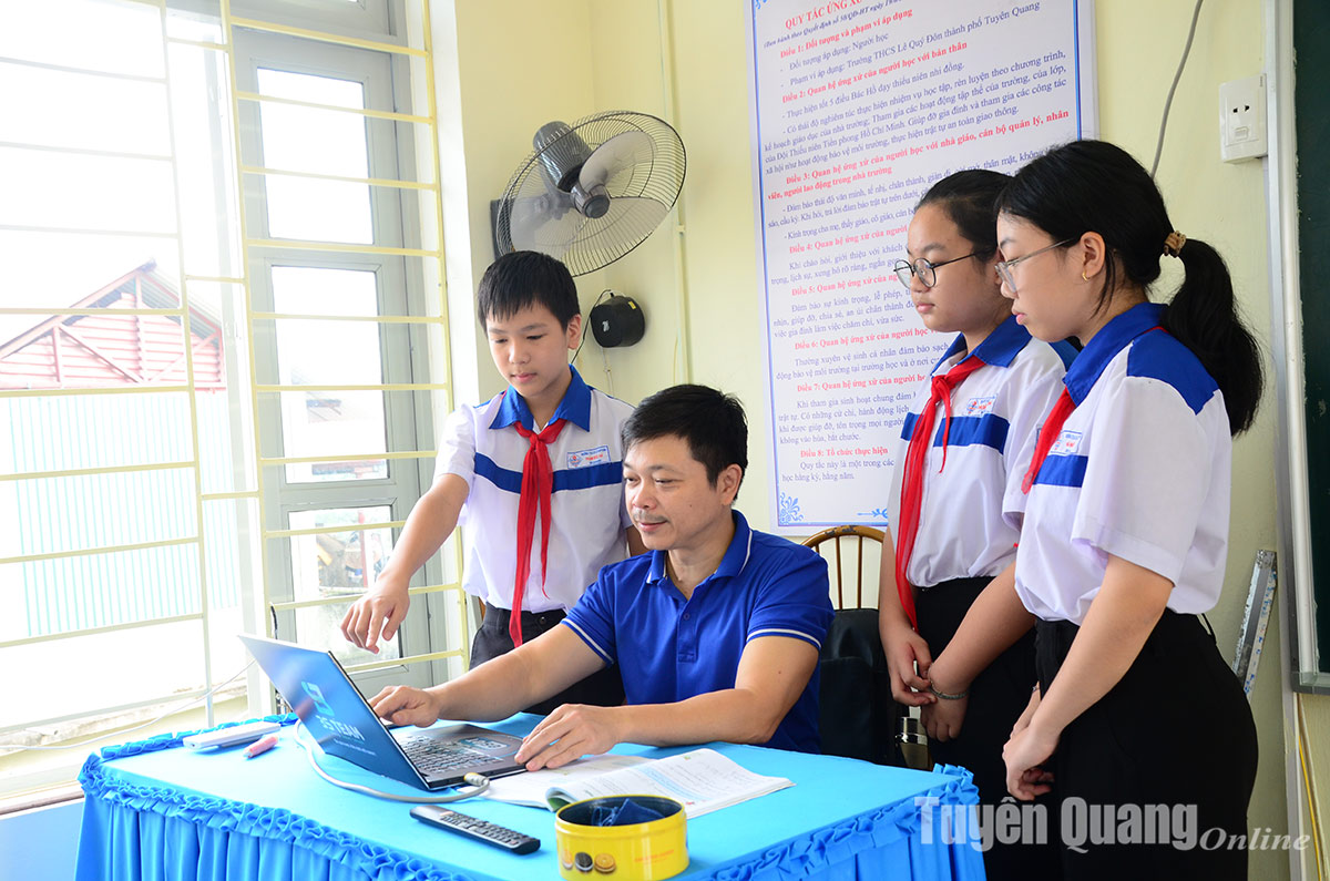 Thầy và trò Trường THCS Lê Quý Đôn (TP Tuyên Quang) sử dụng các phần mềm trong dạy và học. Ảnh Dương Châu.