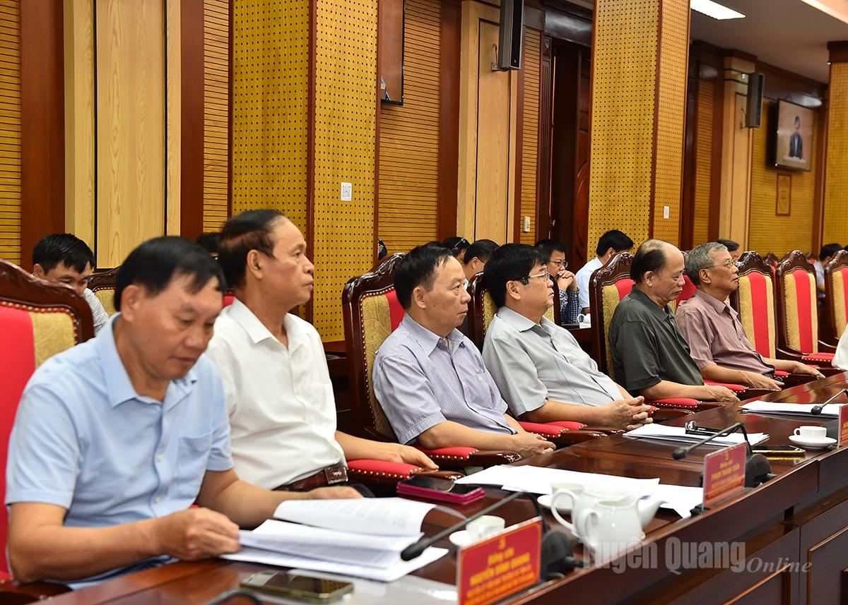 Dự hội nghị tại điểm cầu Tỉnh ủy Tuyên Quang có các đồng chí: Hà Thị Khiết, nguyên Bí thư Trung ương Đảng, nguyên Trưởng ban Dân vận Trung ương; Hầu A Lềnh, Ủy viên BCH Trung ương Đảng, Bí thư Tỉnh ủy; Nguyễn Sáng Vang, nguyên Ủy viên BCH Trung ương Đảng, nguyên Phó chủ nhiệm Ủy ban Kiểm tra Trung ương, nguyên Bí thư Tỉnh ủy; Lê Thị Kim Dung, Phó Bí thư Thường trực Tỉnh ủy; Nguyễn Văn Sơn, Phó Bí thư Tỉnh ủy, Chủ tịch HĐND tỉnh; Phan Huy Ngọc, Phó Bí thư Tỉnh ủy, Chủ tịch UBND tỉnh; các đồng chí nguyên lãnh đạo tỉnh, Ủy viên, nguyên Ủy viên Ban Thường vụ Tỉnh ủy, Ủy viên BCH Đảng bộ tỉnh; lãnh đạo HĐND, UBND, Ủy ban MTTQ, Đoàn ĐBQH, các sở, ban, ngành tỉnh. Hội nghị được kết nối trực tuyến đến 189 điểm cầu sở, ngành, xã, phường trên địa bàn toàn tỉnh với trên 16.000 đại biểu tham dự.