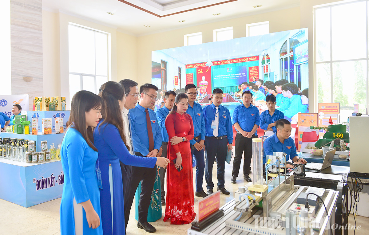 Đồng chí Lê Thị Kim Dung, Phó Bí thư Thường trực Tỉnh ủy, Chủ tịch HĐND tỉnh tham quan mô hình ứng dụng công nghệ số vào phân loại sản phẩm của đoàn viên, thanh niên.