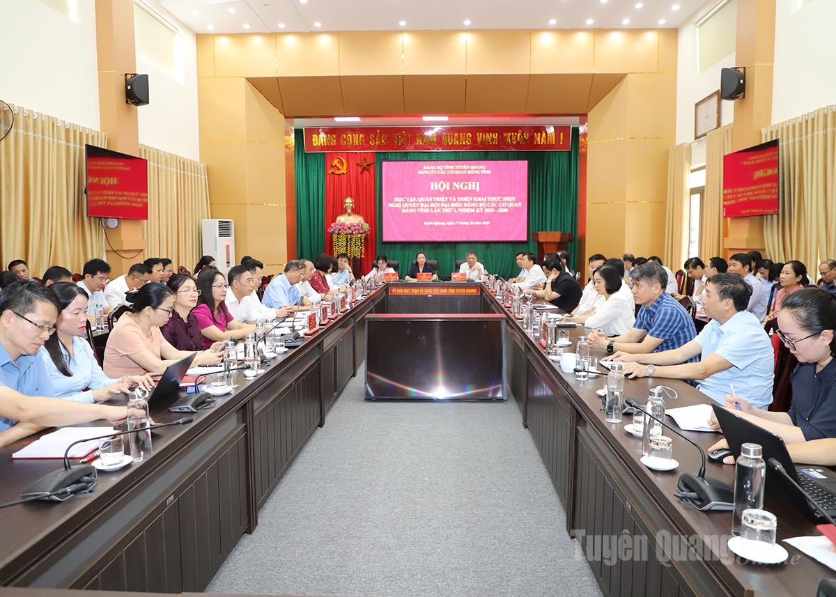 Quang cảnh hội nghị Học tập, quán triệt và triển khai thực hiện Nghị quyết Đại hội đại biểu Đảng bộ các cơ quan Đảng tỉnh lần thứ I.