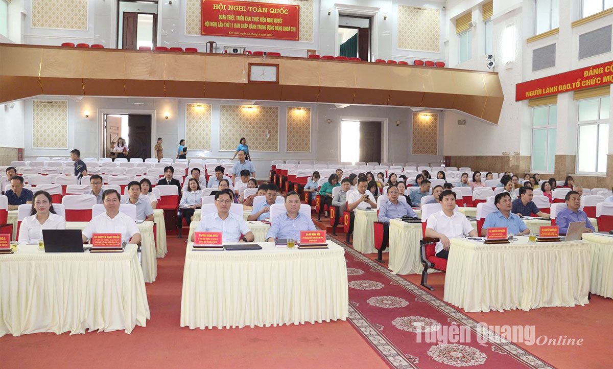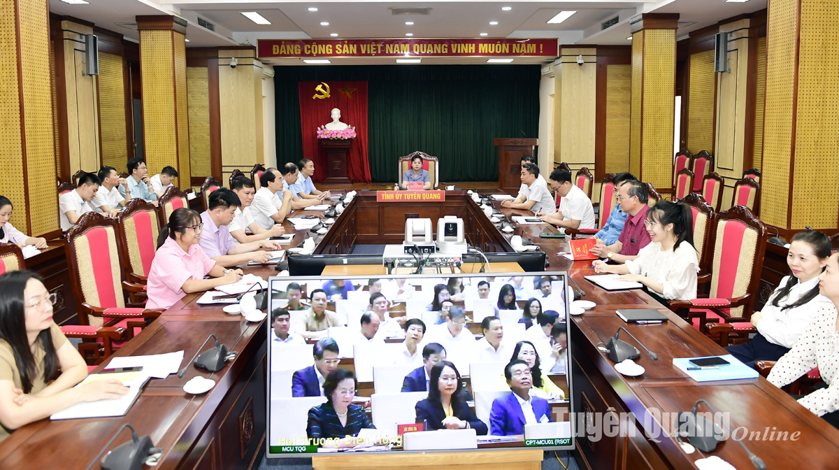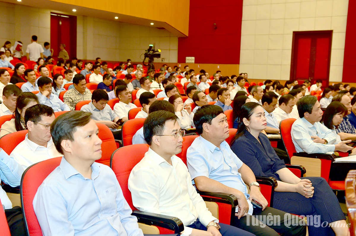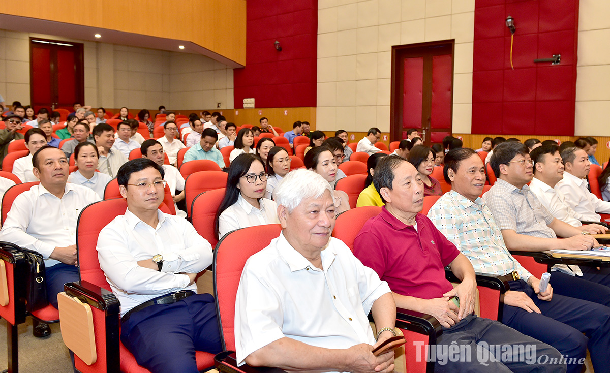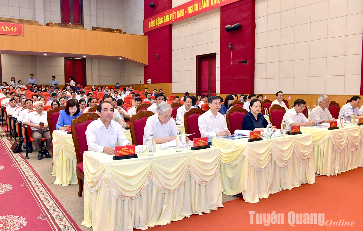 Dự hội nghị tại điểm cầu tỉnh Tuyên Quang có các đồng chí: Hà Thị Nga, Ủy viên BCH Trung ương Đảng, Bí thư Tỉnh ủy, Trưởng Đoàn ĐBQH tỉnh; Nguyễn Sáng Vang, nguyên Ủy viên BCH Trung ương Đảng, nguyên Phó Chủ nhiệm Ủy ban Kiểm tra Trung ương, nguyên Bí thư Tỉnh ủy; Chẩu Văn Lâm, nguyên Ủy viên BCH Trung ương Đảng, nguyên Bí thư Tỉnh ủy; Lê Thị Kim Dung, Phó Bí thư Thường trực Tỉnh ủy, Chủ tịch HĐND tỉnh; Nguyễn Văn Sơn, Phó Bí thư Tỉnh ủy, Chủ tịch UBND tỉnh; các đồng chí nguyên Thường trực Tỉnh ủy; Ủy viên, nguyên Ủy viên Ban Thường vụ Tỉnh ủy, BCH Đảng bộ tỉnh, lãnh đạo các sở, ban, ngành, đoàn thể, cơ quan, đơn vị cấp tỉnh.