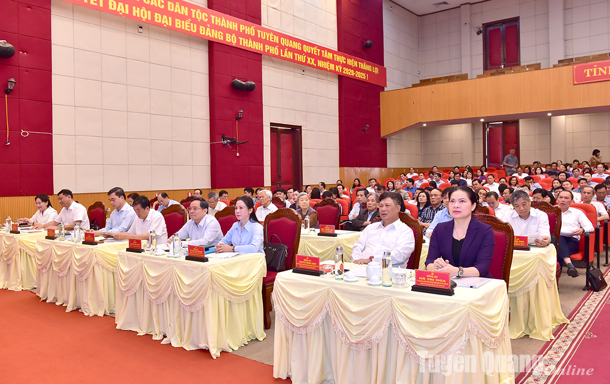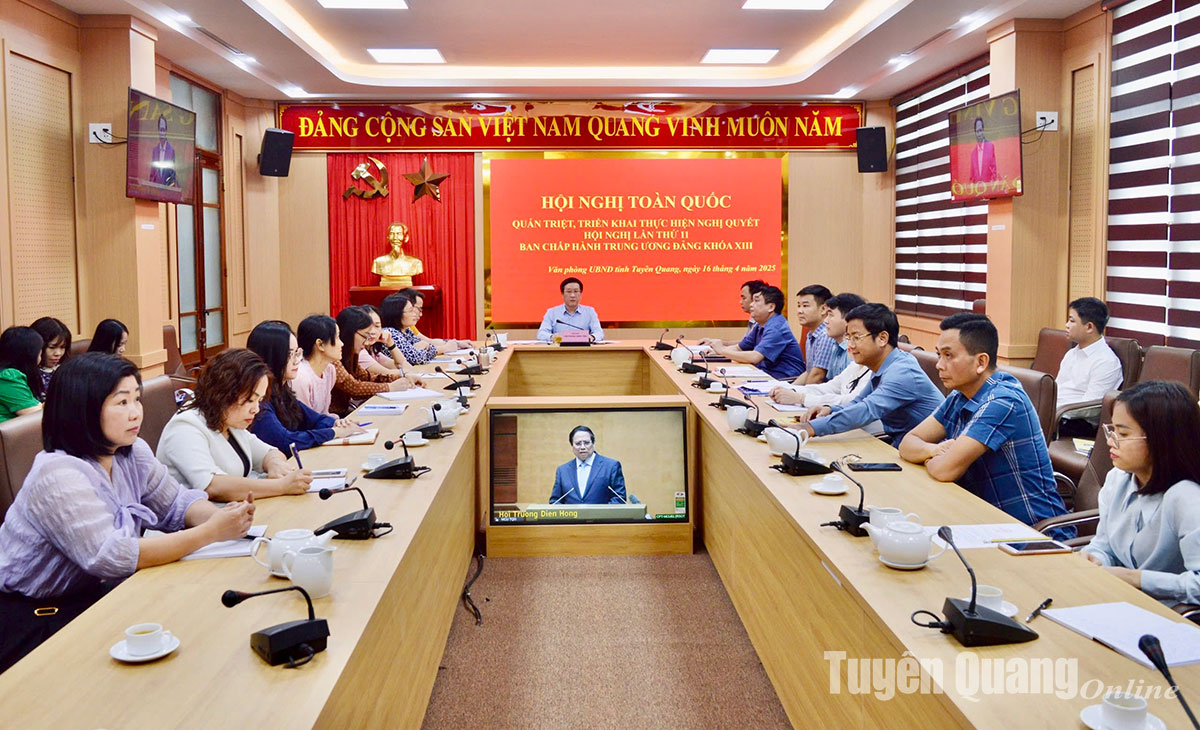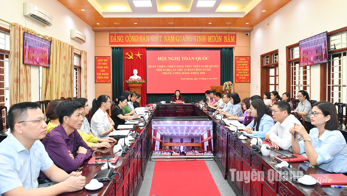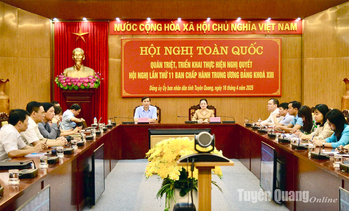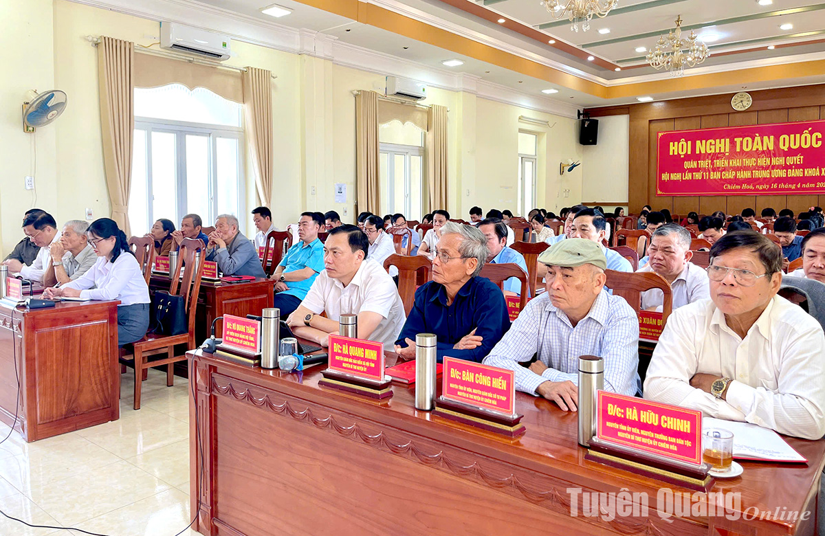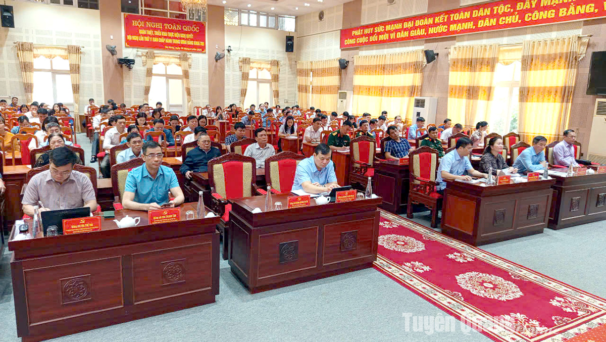 Dự hội nghị tại điểm cầu tỉnh Tuyên Quang có các đồng chí: Hà Thị Nga, Ủy viên BCH Trung ương Đảng, Bí thư Tỉnh ủy, Trưởng Đoàn ĐBQH tỉnh; Nguyễn Sáng Vang, nguyên Ủy viên BCH Trung ương Đảng, nguyên Phó Chủ nhiệm Ủy ban Kiểm tra Trung ương, nguyên Bí thư Tỉnh ủy; Chẩu Văn Lâm, nguyên Ủy viên BCH Trung ương Đảng, nguyên Bí thư Tỉnh ủy; Lê Thị Kim Dung, Phó Bí thư Thường trực Tỉnh ủy, Chủ tịch HĐND tỉnh; Nguyễn Văn Sơn, Phó Bí thư Tỉnh ủy, Chủ tịch UBND tỉnh; các đồng chí nguyên Thường trực Tỉnh ủy; Ủy viên, nguyên Ủy viên Ban Thường vụ Tỉnh ủy, BCH Đảng bộ tỉnh, lãnh đạo các sở, ban, ngành, đoàn thể, cơ quan, đơn vị cấp tỉnh.