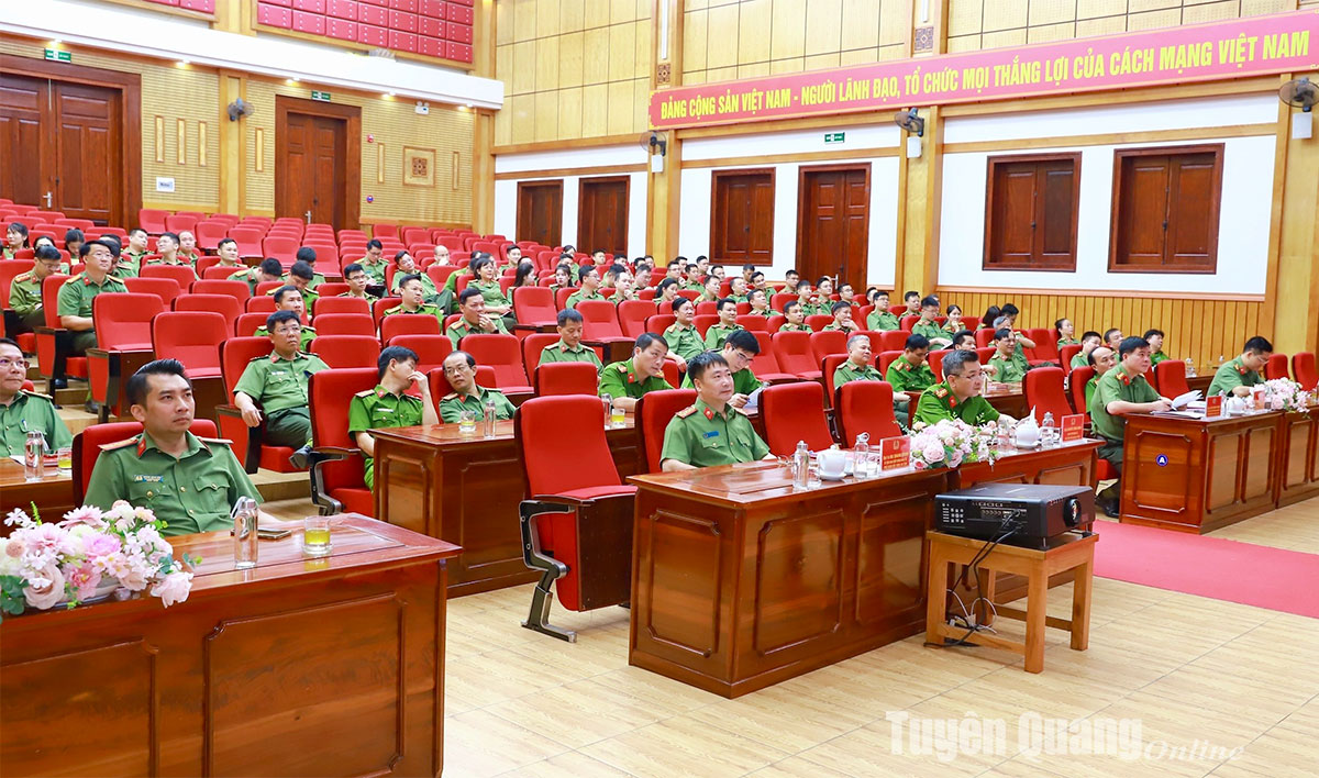 Các đại biểu dự tại điểm cầu Công an tỉnh. Ảnh: Lý Thịnh.