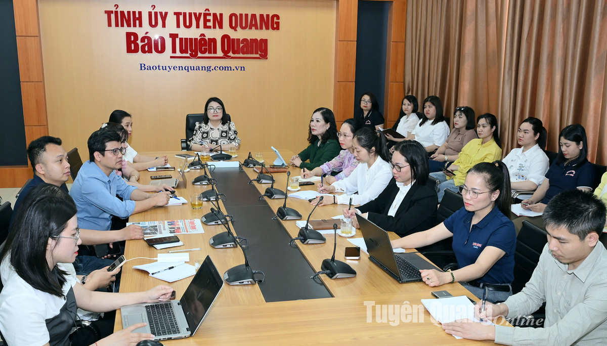 Ban Biên tập, phóng viên, biên tập viên, kỹ thuật viên Báo Tuyên Quang tại điểm cầu trực tuyến Báo Tuyên Quang. Ảnh: Quang Hòa.