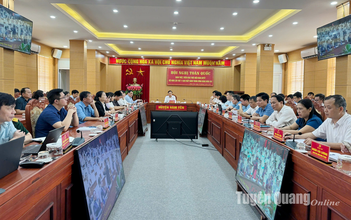 Các đại biểu dự hội nghị tại điểm cầu huyện Hàm Yên. Ảnh: Trang Tâm.