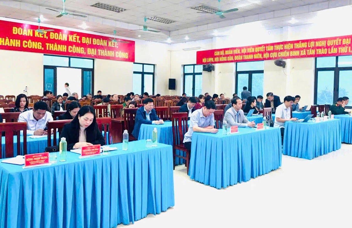 Các đại biểu dự hội nghị tại điểm cầu xã Tân Trào. Ảnh Lý Thu.