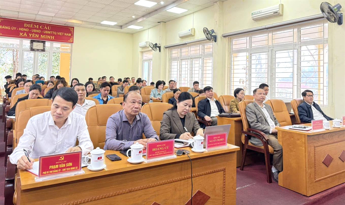 Các đại biểu dự hội nghị tại điểm cầu xã Yên Minh. Ảnh: Phạm Hoan.
