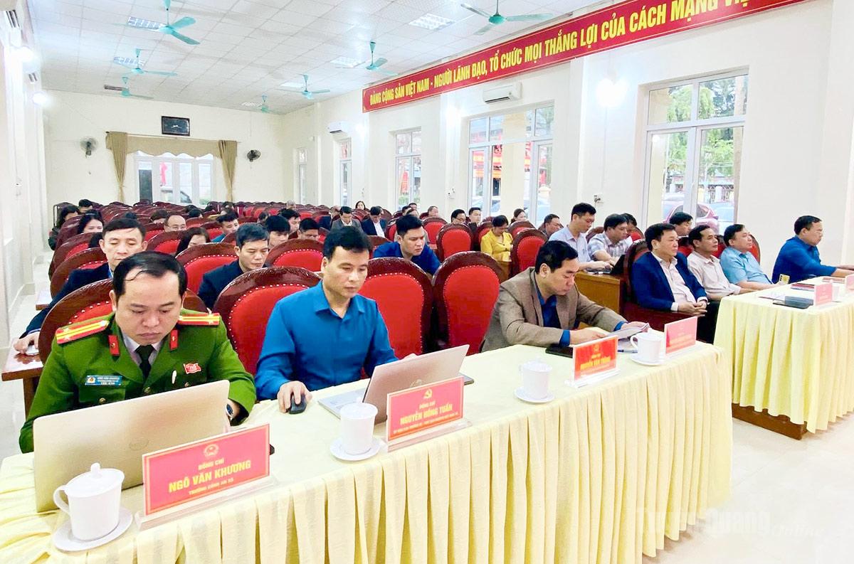 Các đại biểu dự tại điểm cầu xã Ngọc Đường. Ảnh Khánh Huyền.