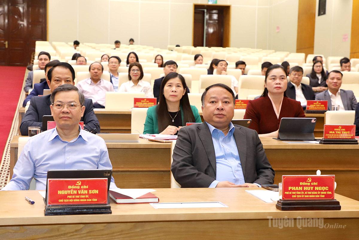 Dự hội nghị tại điểm cầu Trung tâm Hội nghị tỉnh Tuyên Quang có các đồng chí: Hầu A Lềnh, Ủy viên Ban Chấp hành Trung ương Đảng, Bí thư Tỉnh ủy; Lê Thị Kim Dung, Phó Bí thư Thường trực Tỉnh ủy; Nguyễn Văn Sơn, Phó Bí thư Tỉnh ủy, Chủ tịch HĐND tỉnh; Phan Huy Ngọc, Phó Bí thư Tỉnh ủy, Chủ tịch UBND tỉnh; Ma Thế Hồng, Phó Bí thư Tỉnh ủy, Chủ tịch Ủy ban MTTQ tỉnh; các đồng chí Ủy viên Ban Thường vụ Tỉnh ủy; lãnh đạo HĐND, UBND, Ủy ban MTTQ, Đoàn đại biểu Quốc hội tỉnh; lãnh đạo các sở, ban, ngành của tỉnh.