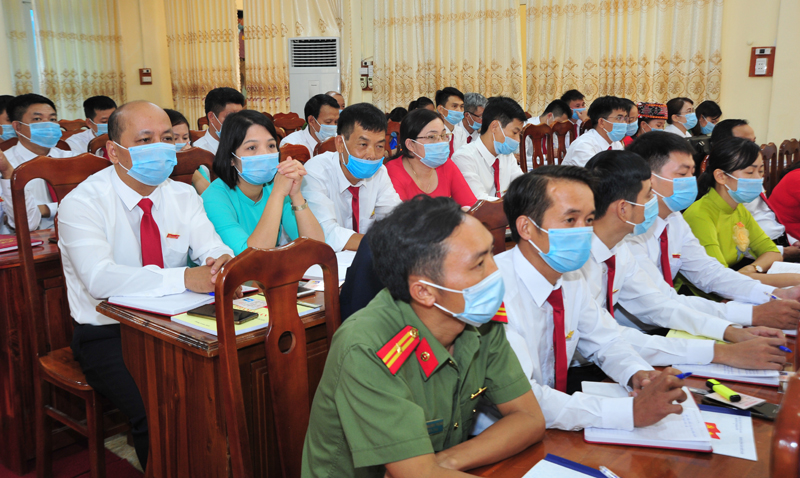 Đồng chí Hà Phúc Phình, Bí thư Huyện ủy trình bày Đề án nhân sự Ban Chấp hành Đảng bộ huyện khóa XXI, nhiệm kỳ 2020-2025. Đại hội tiến hành bầu Ban Chấp hành Đảng bộ huyện khóa XXI. Kết quả bầu cử, Đại hội đã bầu 34 đồng chí vào Ban Chấp hành Đảng bộ huyện khóa XXI; lấy phiếu giới thiệu Bí thư Huyện ủy tại Đại hội.