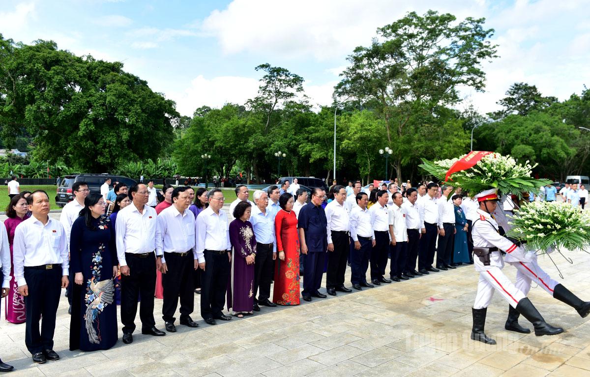 Chủ tịch Quốc hội Trần Thanh Mẫn và các đại biểu dâng hương tại Khu tưởng niệm Chủ tịch Hồ Chí Minh và các vị tiền bối cách mạng.