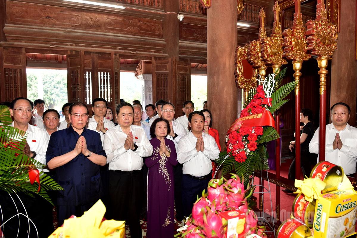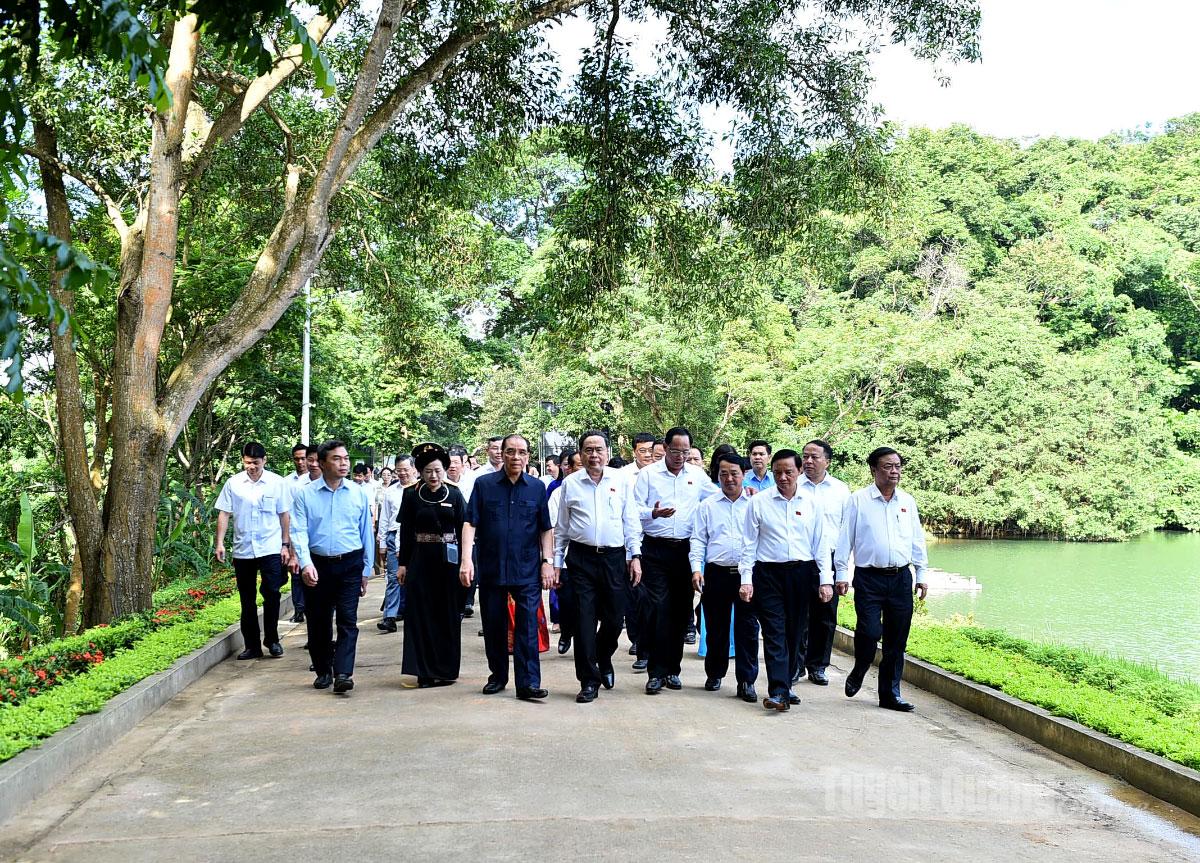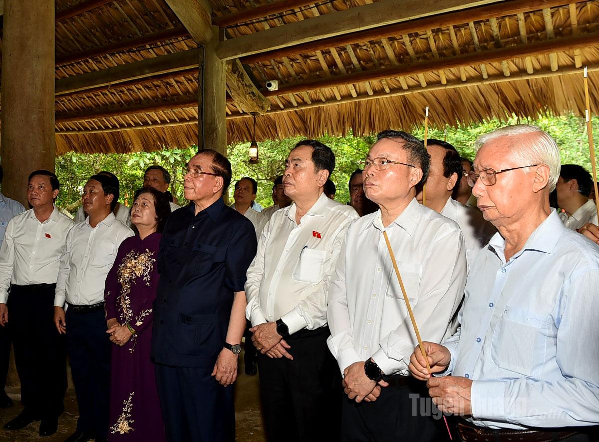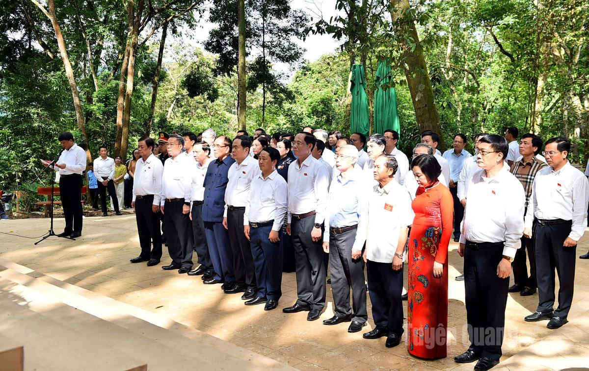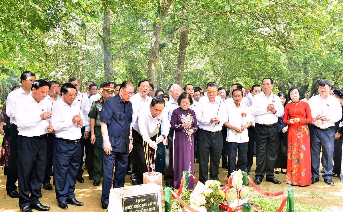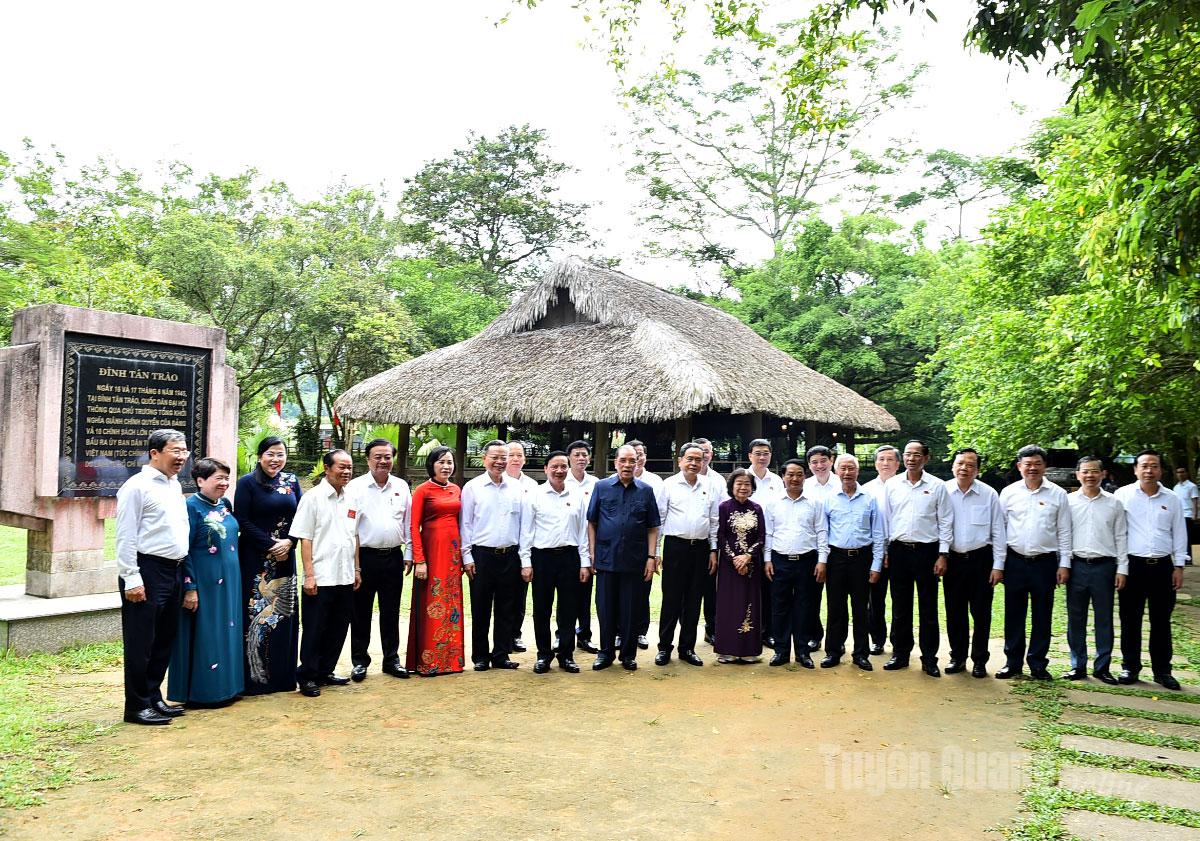 Dâng hương tại Đình Tân Trào, nơi tổ chức họp Quốc dân Đại hội, tiền thân của Quốc hội ngày nay. Diễn ra trong các ngày 16 và 17/8/1945, Quốc dân Đại hội thông qua chủ trương tổng khởi nghĩa giành chính quyền của Đảng và 10 chính sách lớn của Việt Minh, quy định Quốc kỳ, Quốc ca và bầu ra Ủy ban dân tộc giải phóng Việt Nam, tức Chính phủ lâm thời, do lãnh tụ Hồ Chí Minh làm Chủ tịch.