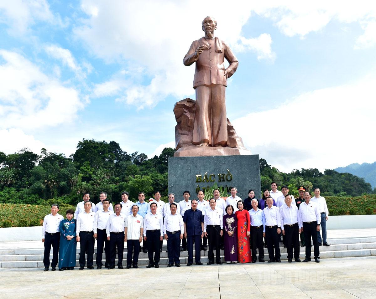 Các đại biểu tại Tượng đài Bác Hồ ở Tân Trào.