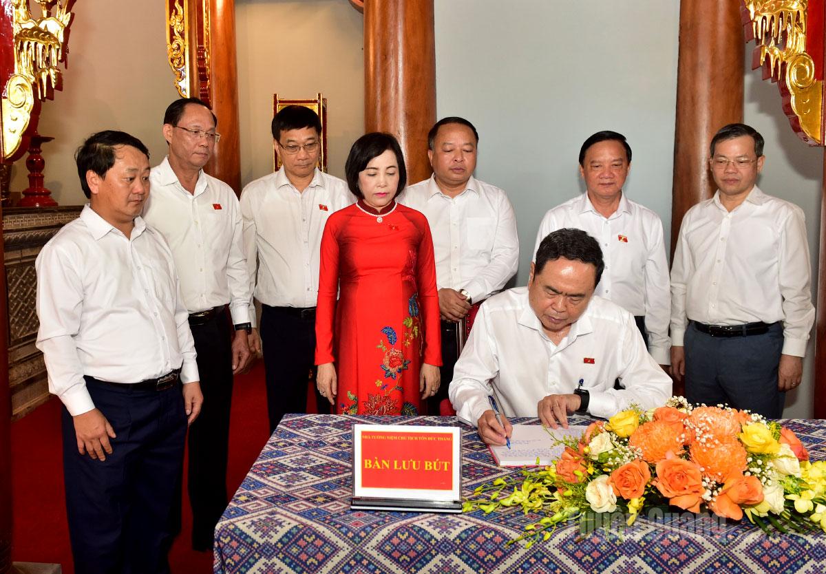 Chủ tịch Quốc hội Trần Thanh Mẫn ghi lưu bút tại Nhà tưởng niệm Chủ tịch Tôn Đức Thắng ở Khu di tích Ban Thường trực Quốc hội.