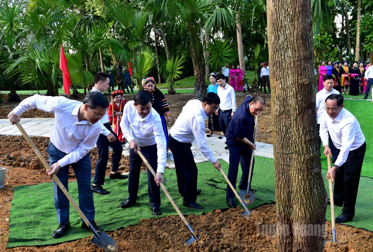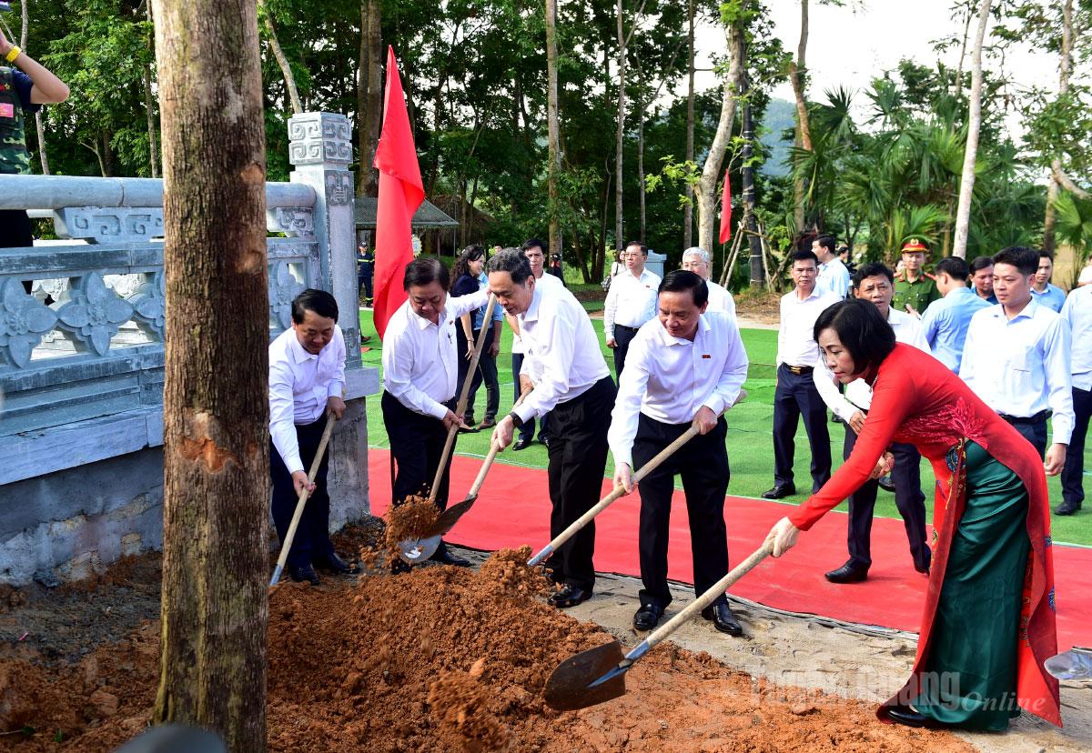 Nguyên Tổng Bí thư Nông Đức Mạnh và các đại biểu trồng cây tại Nhà tưởng niệm Chủ tịch Tôn Đức Thắng tại Khu di tích Ban Thường trực Quốc hội.