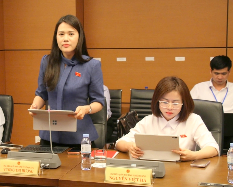 Đại biểu Quốc hội tỉnh Vương Thị Hương phát biểu thảo luận.