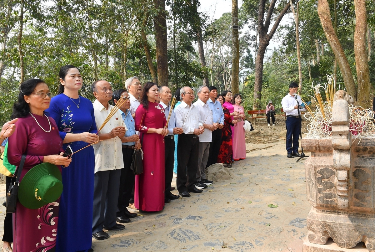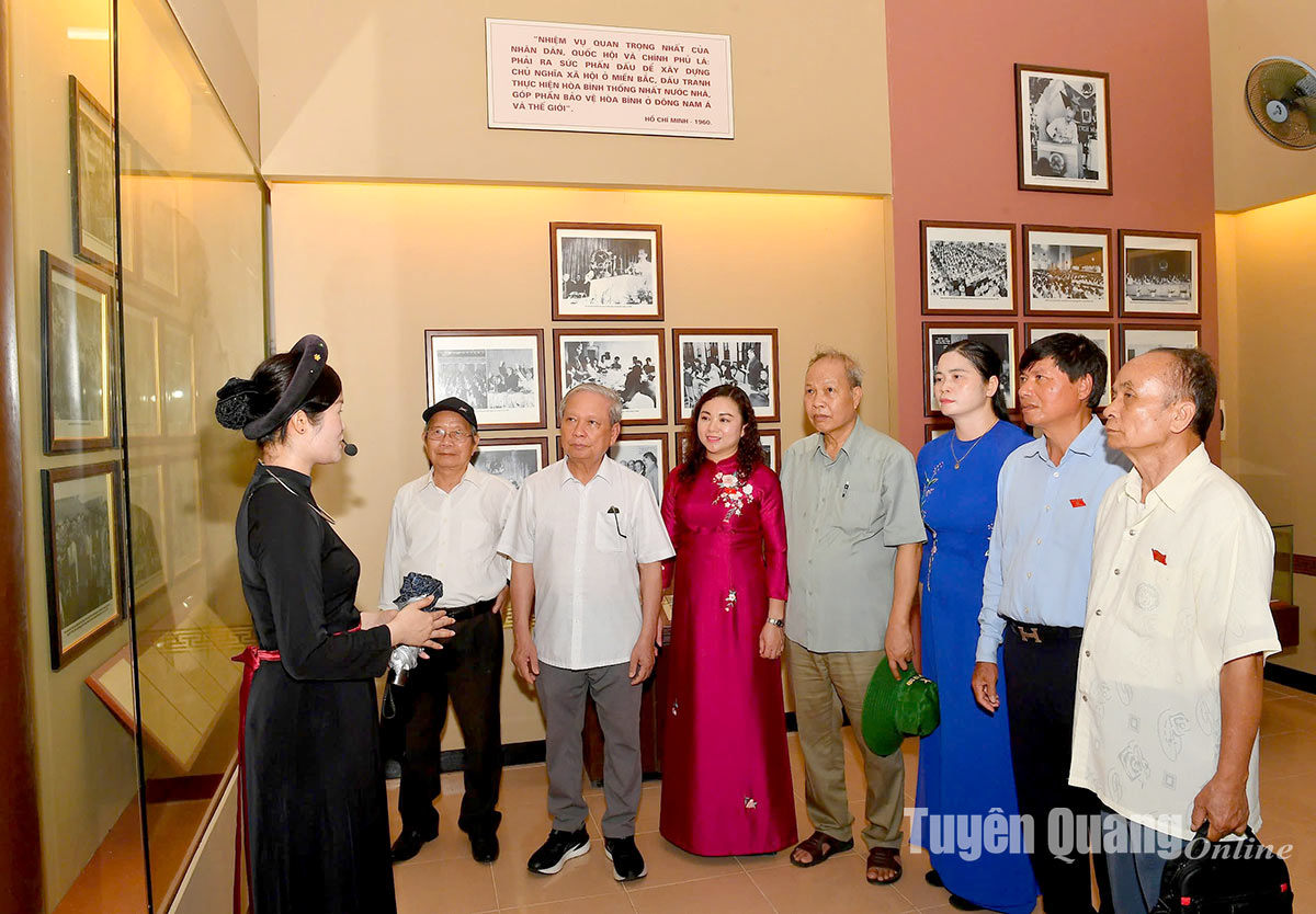 Tại Khu di tích Ban Thường trực Quốc hội, thôn Đồng Mà, xã Trung Yên, huyện Sơn Dương, Đoàn dâng hương tưởng nhớ Chủ tịch Tôn Đức Thắng, thăm nơi ở và làm việc của Ban Thường trực Quốc hội nước Việt Nam Dân chủ Cộng hòa giai đoạn 1952-1954.