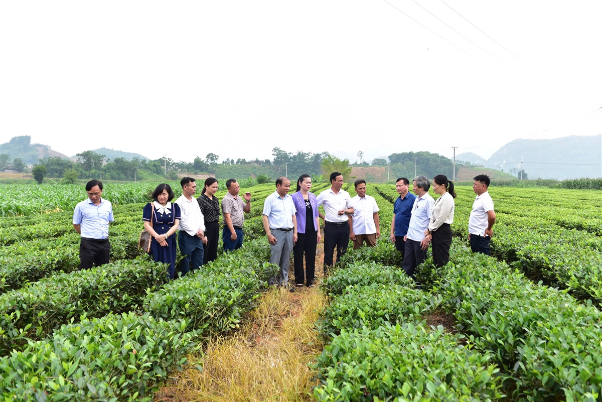 Đoàn thăm vườn chè của Hợp tác xã chè Vĩnh Tân.