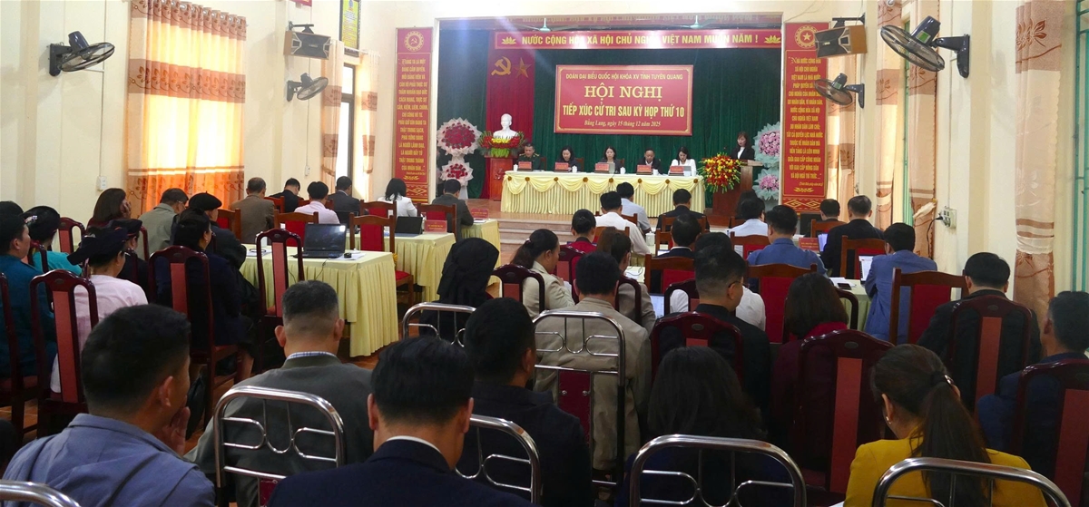 Kết thúc buổi tiếp xúc cử tri, đồng chí Lý Thị Lan, Ủy viên Ban Thường vụ Tỉnh ủy, Trưởng Đoàn đại biểu Quốc hội hoạt động chuyên trách tỉnh Tuyên Quang đánh giá cao các ý kiến phát biểu tâm huyết, trách nhiệm của cử tri xã Bằng Lang. Thay mặt Đoàn ĐBQH tỉnh, đồng chí Lý Thị Lan tiếp thu đầy đủ các ý kiến, kiến nghị của cử tri, tập trung vào các nội dung trọng tâm như tổ chức bộ máy chính quyền hai cấp, chế độ chính sách đối với cán bộ cơ sở, y tế, giáo dục, phát triển kinh tế rừng bền vững, bảo tồn văn hóa dân gian và chuyển đổi số.