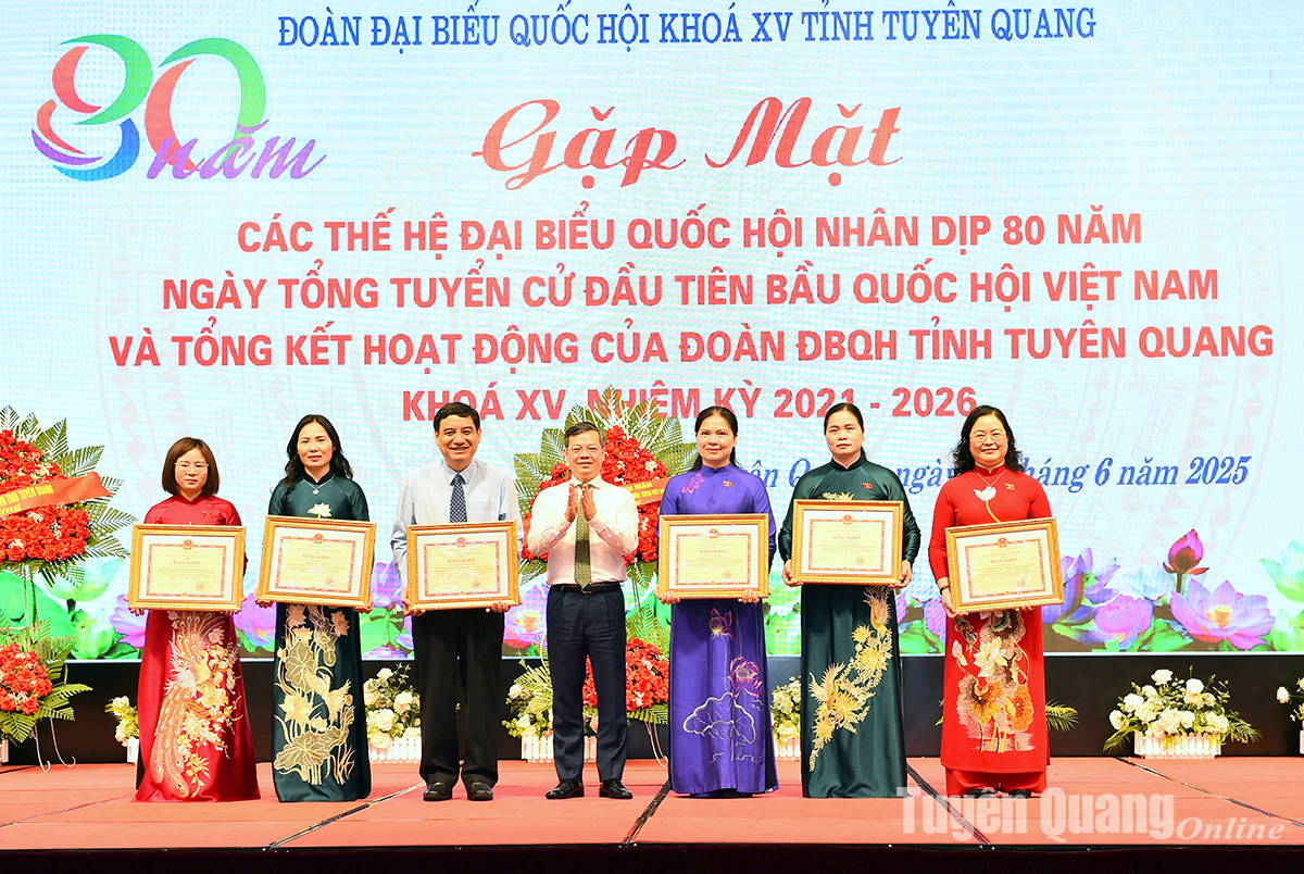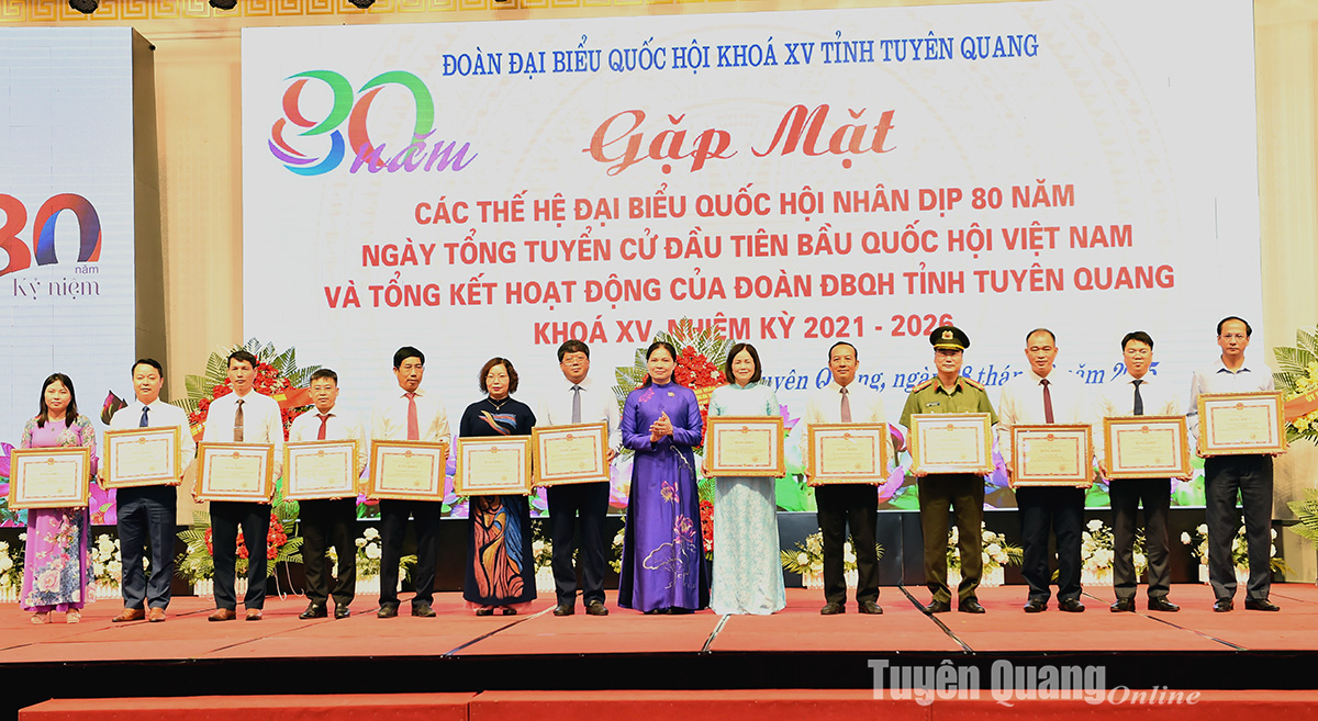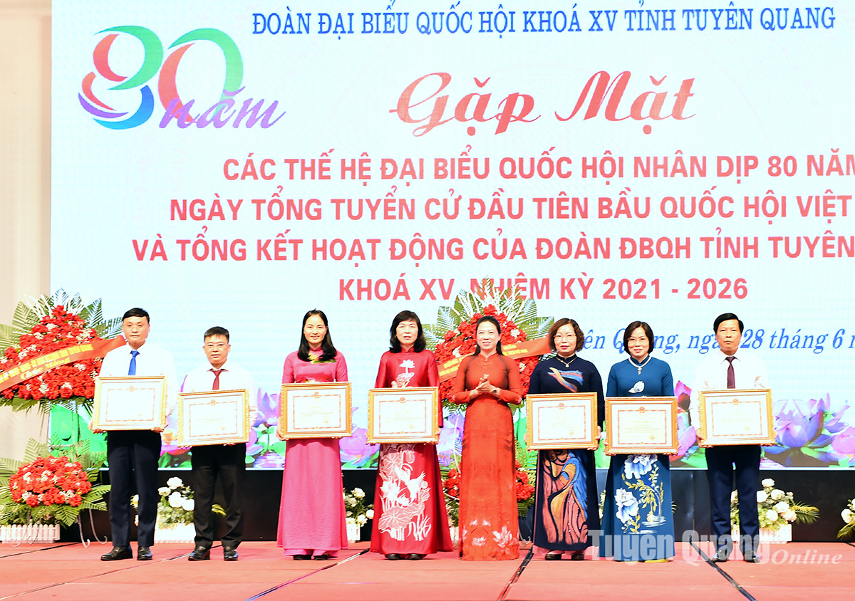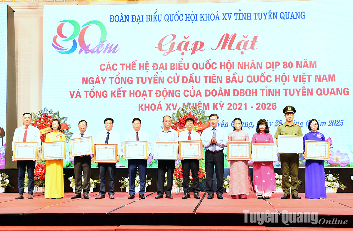 Nhân dịp này, Chủ tịch Ủy ban nhân dân tỉnh Tuyên Quang đã tặng Bằng khen cho 28 tập thể và 35 cá nhân đã có thành tích xuất sắc trong hoạt động của Đoàn Đại biểu Quốc hội khóa XV tỉnh Tuyên Quang, nhiệm kỳ 2021-2026./.